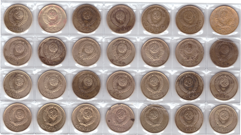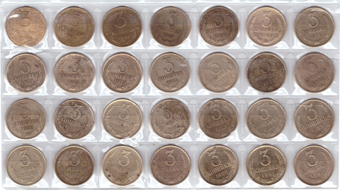 Набор 3 копейки (28 монет): 1946, 56, 57, 61, 68-74, 76-91г. (м/л) F-VF (28 МОНЕТ)