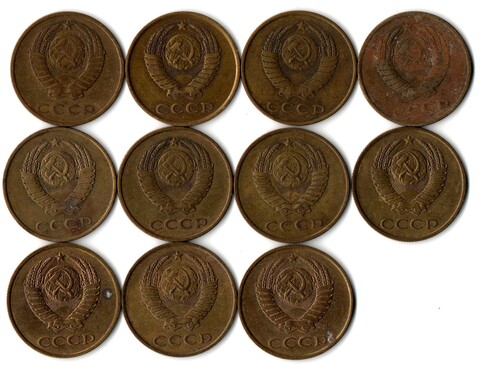 Набор 3 копейки СССР (11 монет) 1970, 81-87, 89,90, 91 л