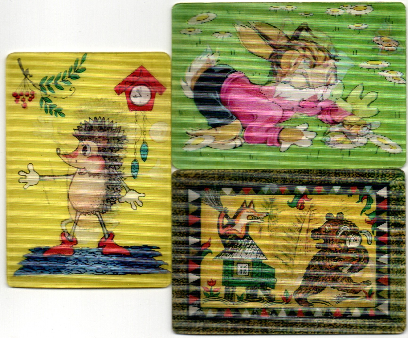Набор №5 из 3 стерео Календариков. Мультфильмы СССР 1984 год. Календарик Стерео мультфильмы, Лиса и заяц, Пустомеля, Поросенок в колючей шубке , Карманный календарик переливной объемный 3D. СССР. Состояние на фото