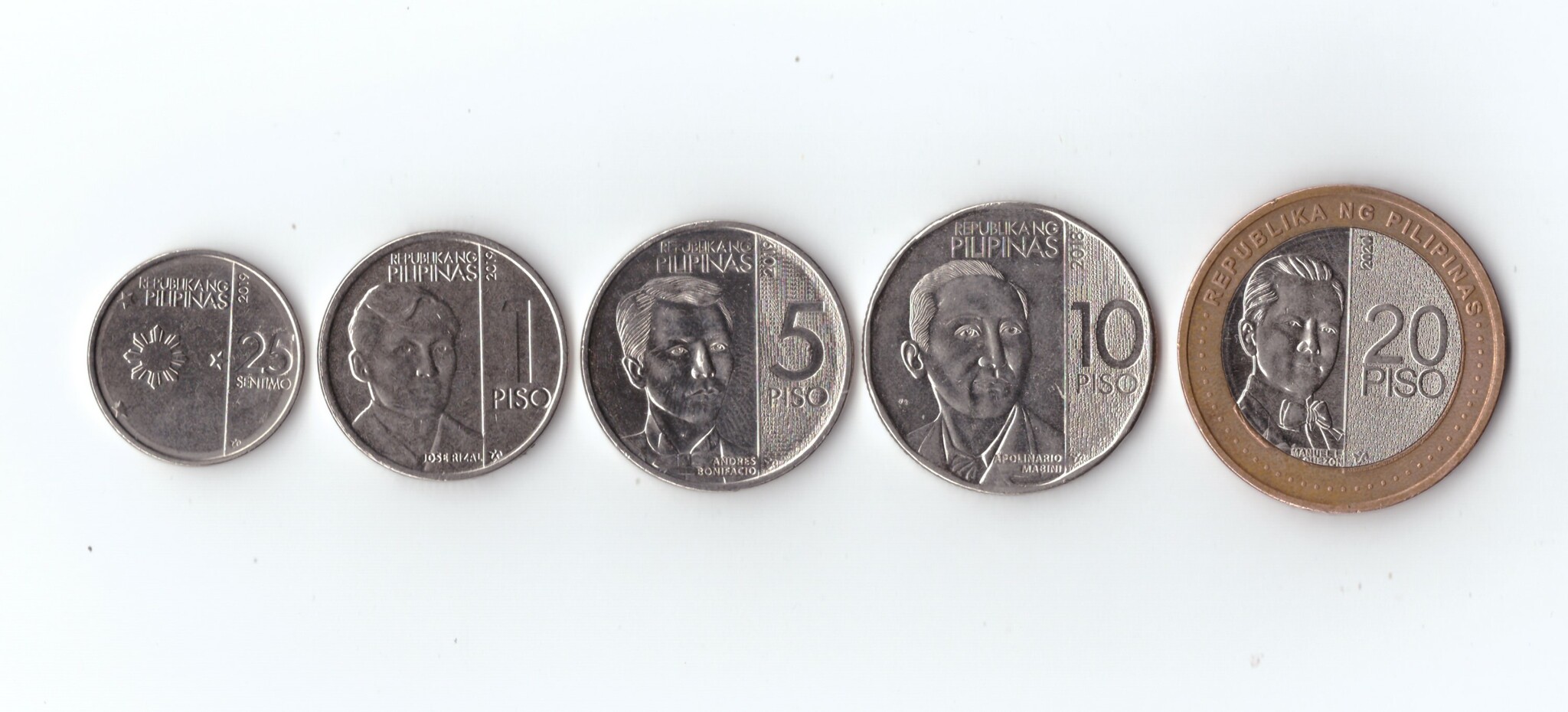 Набор 5 монет Филиппинские острова (20, 10, 5,1 песо, 25 сентимо )