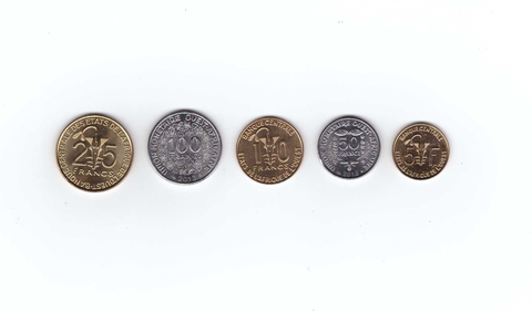 Набор 5 монет Западная Африка ВСЕАО фауна 5, 10,25,50,100 франков