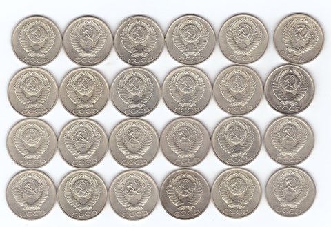 Набор 50 копеечных монет периода с 1961 по 1991 год без повторов, не включая редкие.
