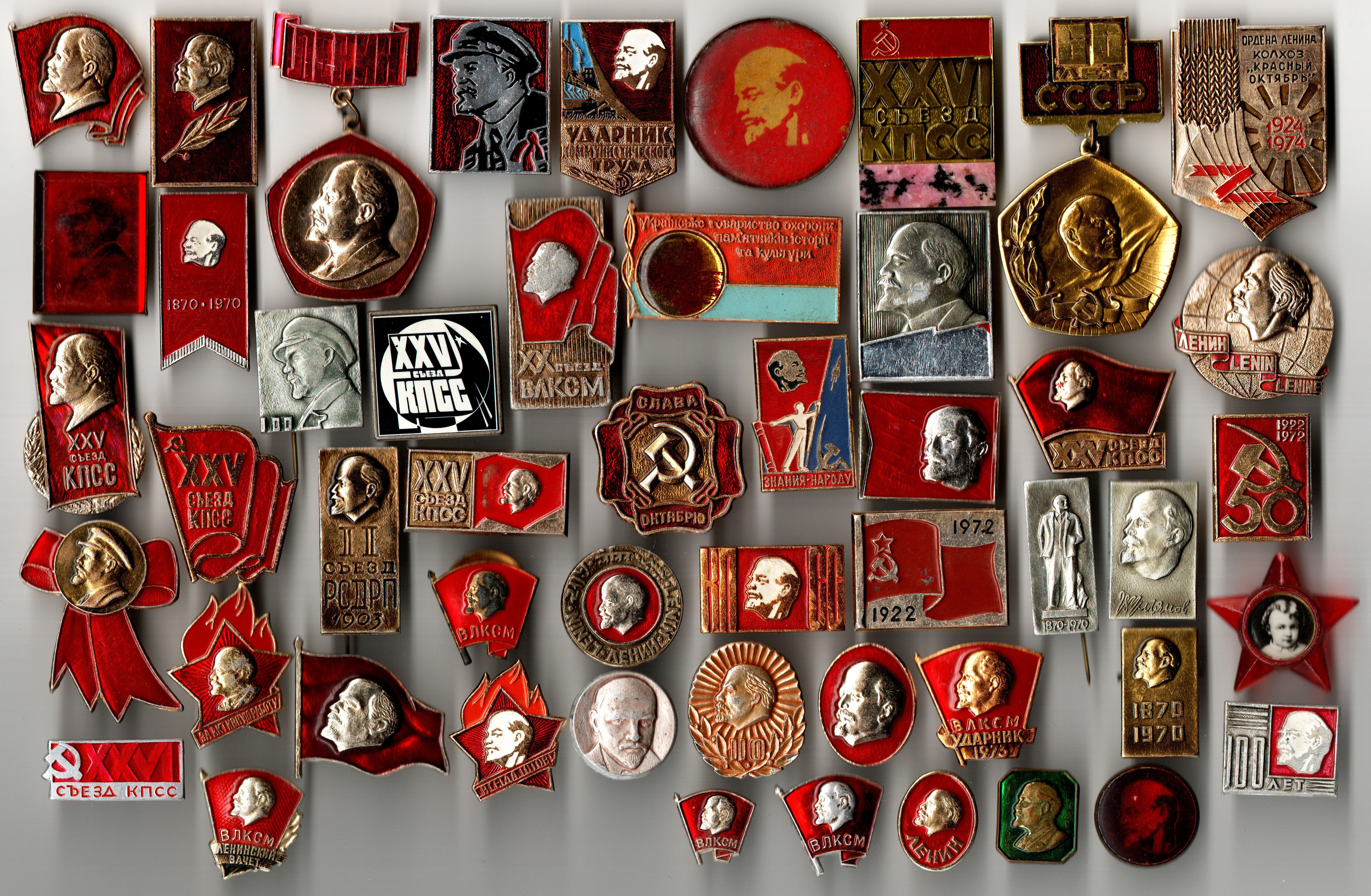 Набор 50 значков СССР на тему Ленин, Октябрь, ВЛКСМ, Партсъезды КПСС без повторов