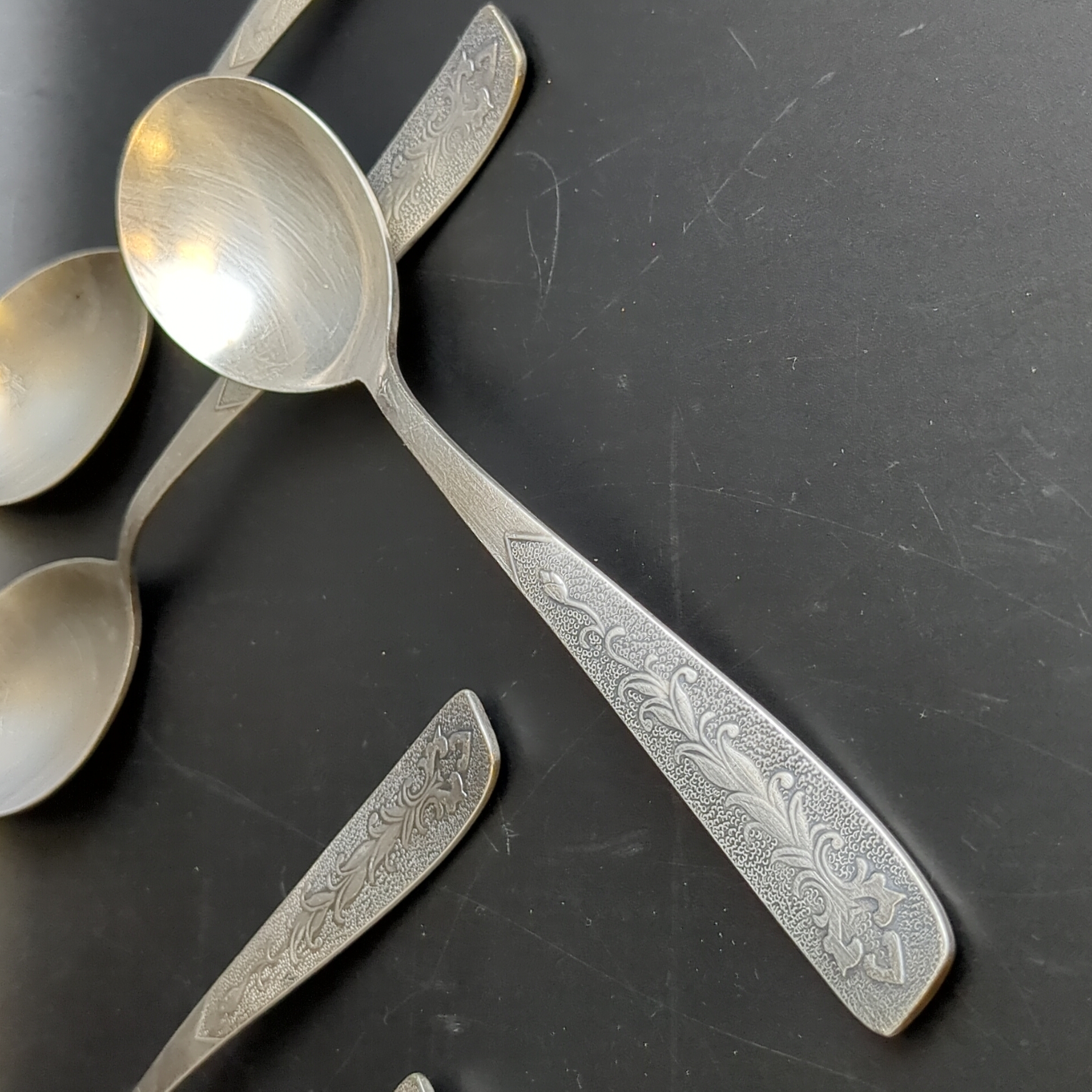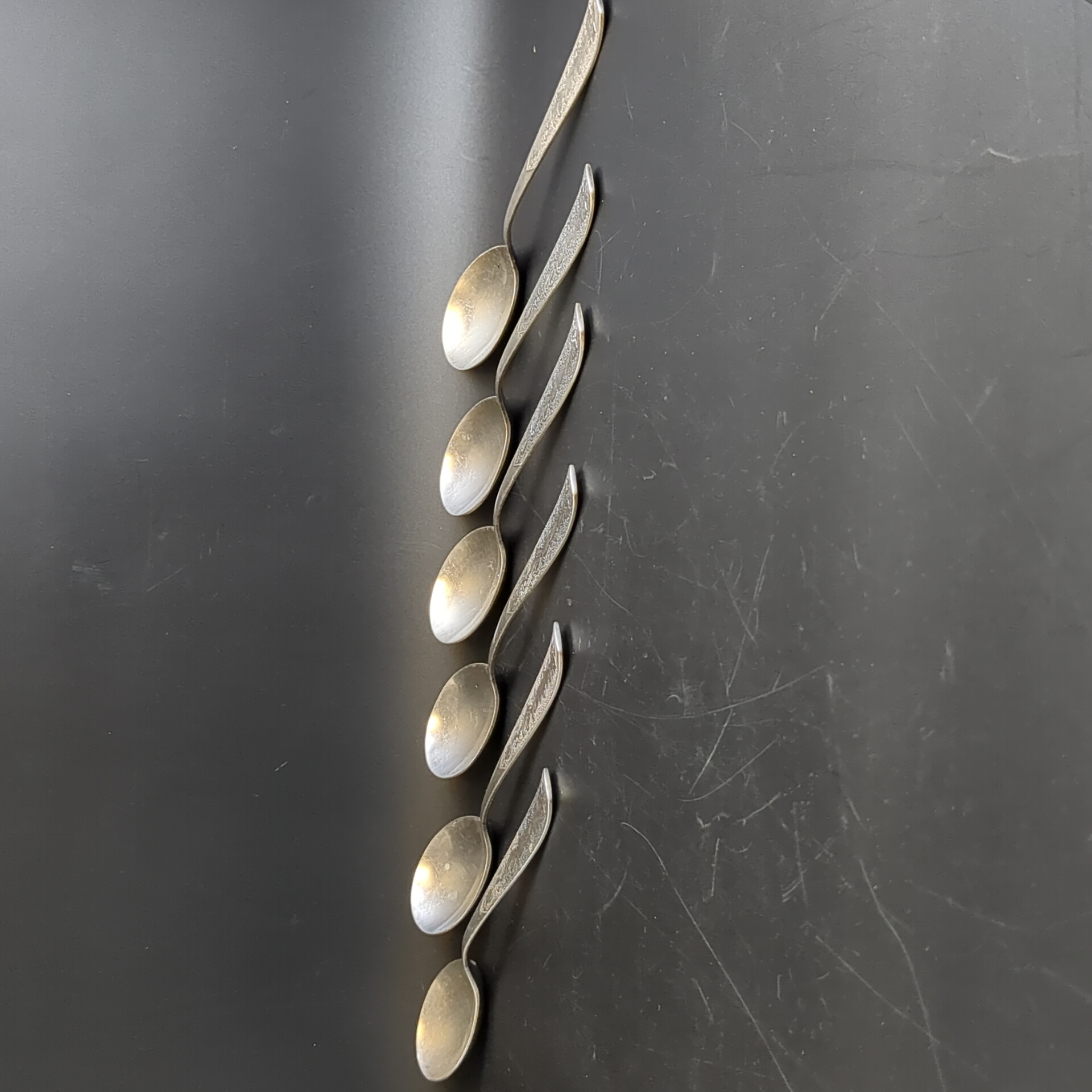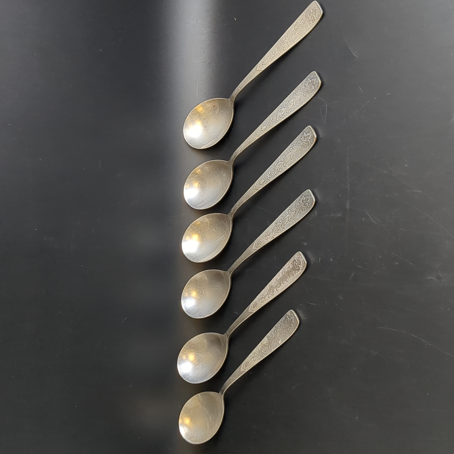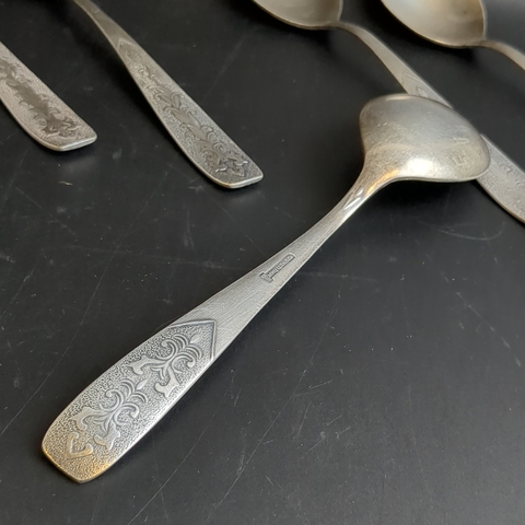 Набор 6 столовых ложек "Хмель", мНЦ (медь-никель-цинк), Завод «Проминь», СССР, 1960-1990 гг.