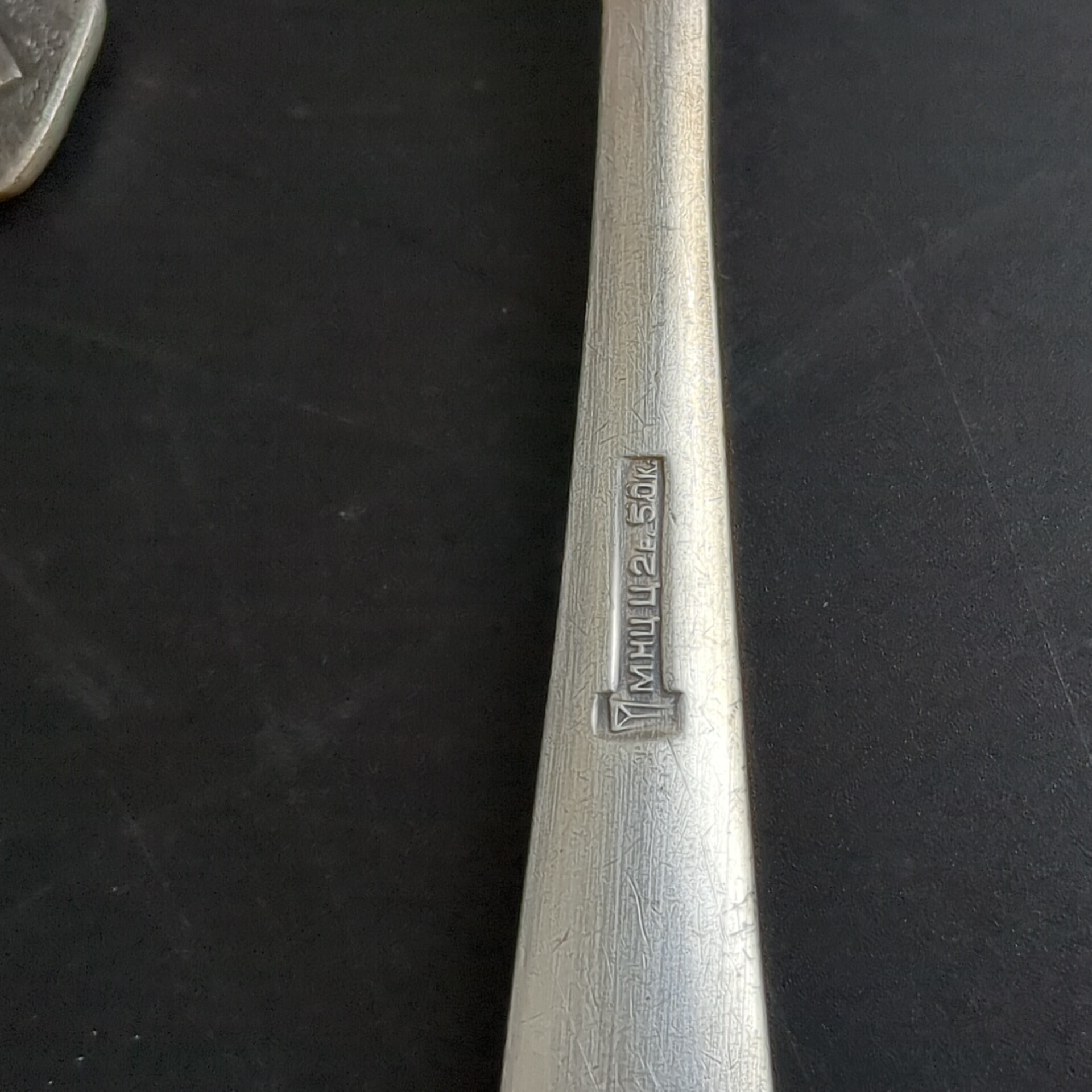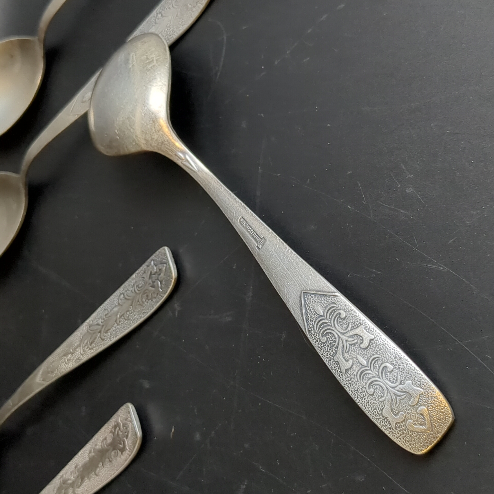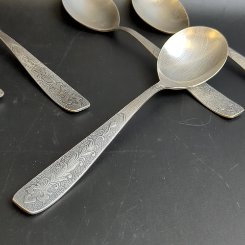 Набор 6 столовых ложек Хмель мНЦ (медь-никель-цинк), Завод «Проминь», СССР, 1960-1990 гг. Элегантный винтажный набор столовых ложек «Хмель», выполненный в характерном для советского столового серебрения стиле. Ложки изготовлены из сплава мНЦ (медь-никель-цинк), известного своей прочностью, устойчивостью к коррозии и благородным серебристым оттенком. Ручки украшены изящным растительным орнаментом, благодаря чему приборы выглядят утончённо и декоративно. Такой дизайн был особенно популярен в 1960–1980-е годы и прекрасно передаёт эстетику советского декоративно-прикладного искусства. Набор произведён на Заводе Проминь — одном из известных предприятий СССР по выпуску качественных столовых приборов. Изделия этого завода ценятся коллекционерами и любителями винтажной посуды. Вилки подойдут для коллекции или сервировки стола в ретро-стиле. Характеристики: * Количество: 6 столовых ложек, длина ложки 19,4 см * Модель: «Хмель» * Материал: мНЦ (медь-никель-цинк), микроцарапинки. * Декор: растительный орнамент на ручке * Производитель: Завод «Проминь» * Период производства: 1960–1980-е годы * Страна: СССР Стильный и атмосферный винтажный набор, который станет украшением чайной сервировки и интересным предметом коллекции.