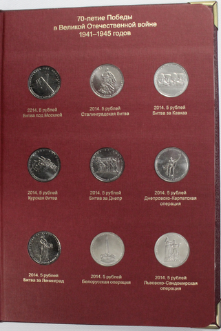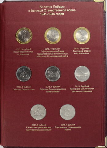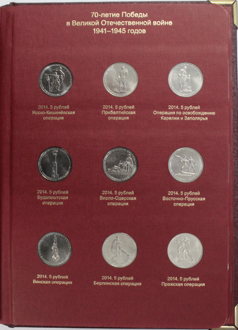 Полный комплект монет в альбоме 5 и 10 рублей 2014-2016 гг. серии "70 лет Победы в ВОВ"