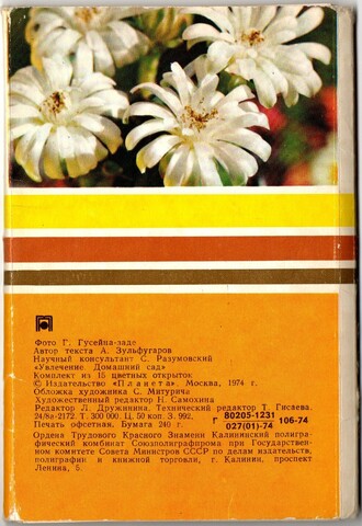 Набор 8 открыток Увлечение домашний сад СССР. 1974 год