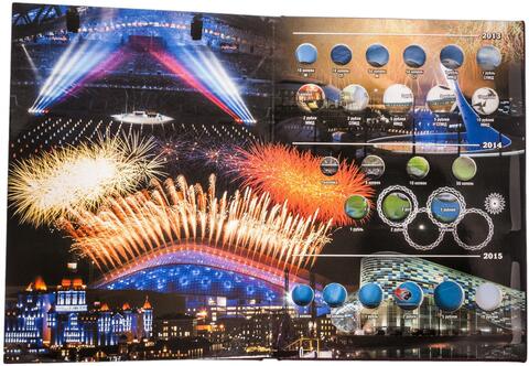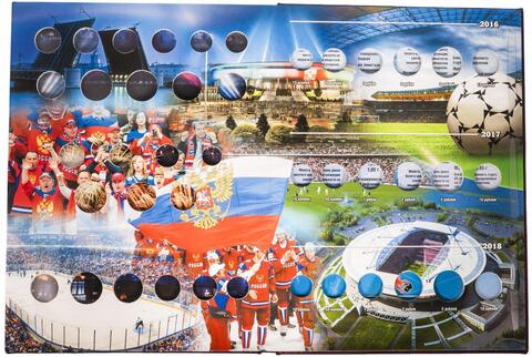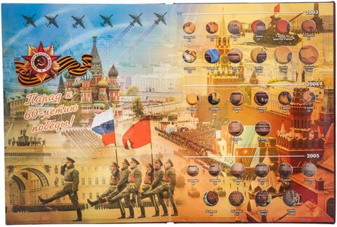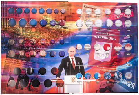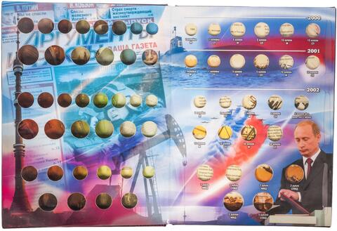 Монеты вставляются в ячейки и закрываются пластиковыми вставками, которые входят в комплект к альбому.
