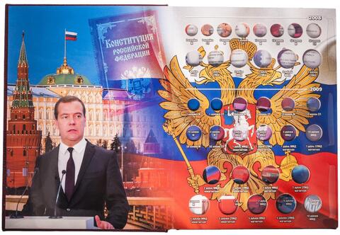Альбом-книга для монет России регулярного выпуска 1997-2021 гг. по годам (2 тома) Бордо