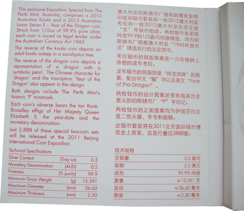 Набор Австралии. 50 центов. Год дракона и коала. 2012 г. Серебро, в буклете
