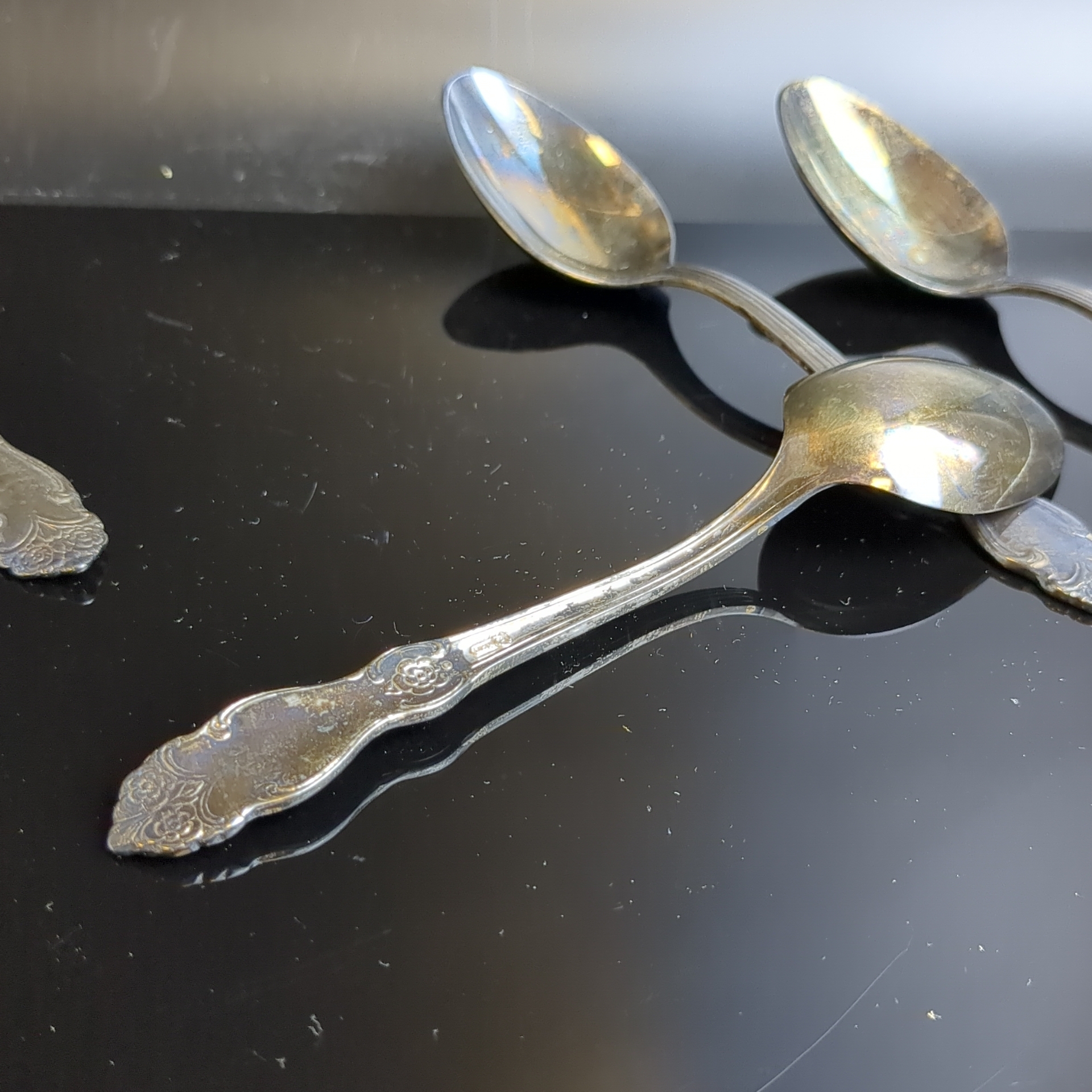 Набор чайных ложек "Серебряная роза" на 4 персоны, мНЦ (медь-никель-цинк), серебрение, Кольчугинский завод цветных металлов, СССР, 1962-1990 гг.