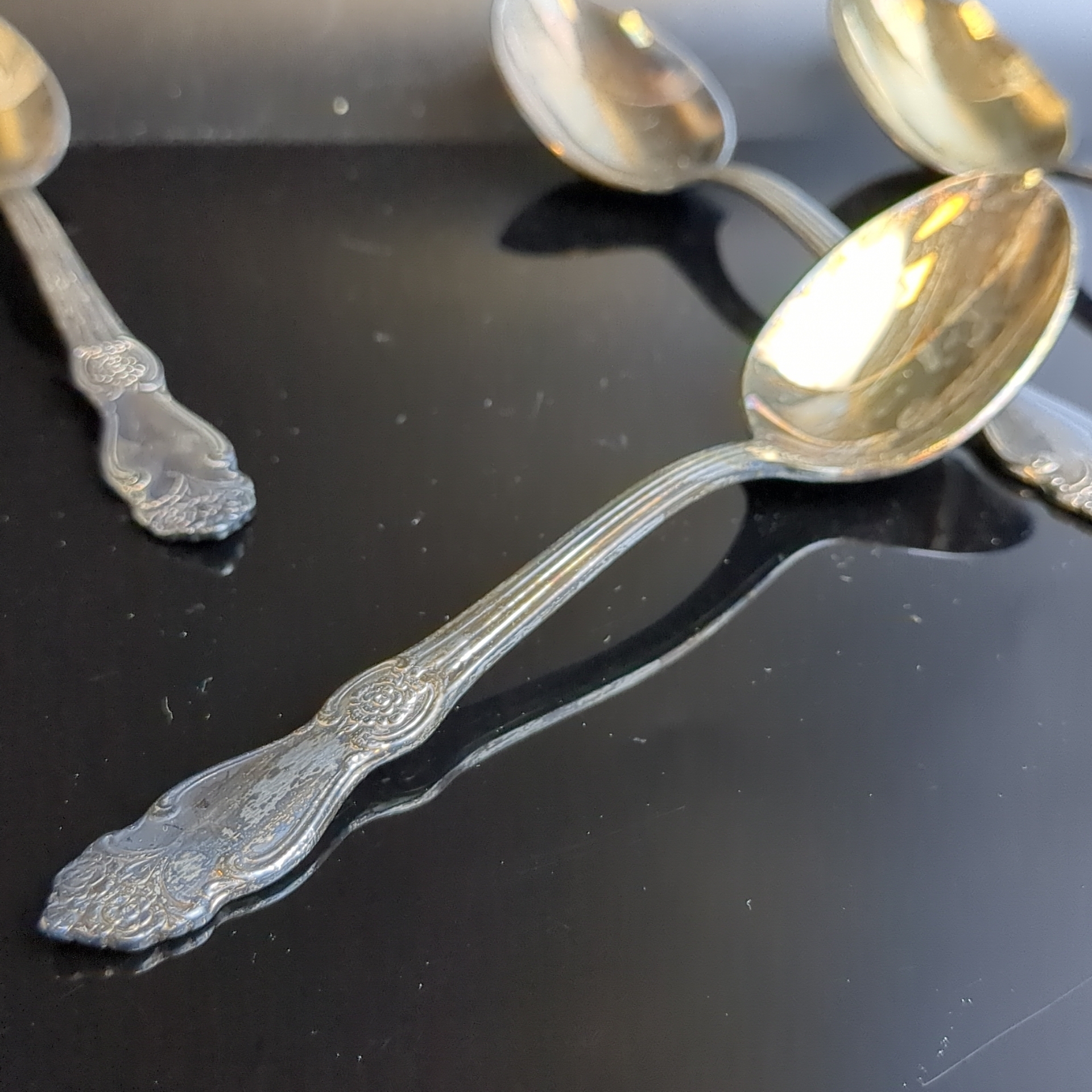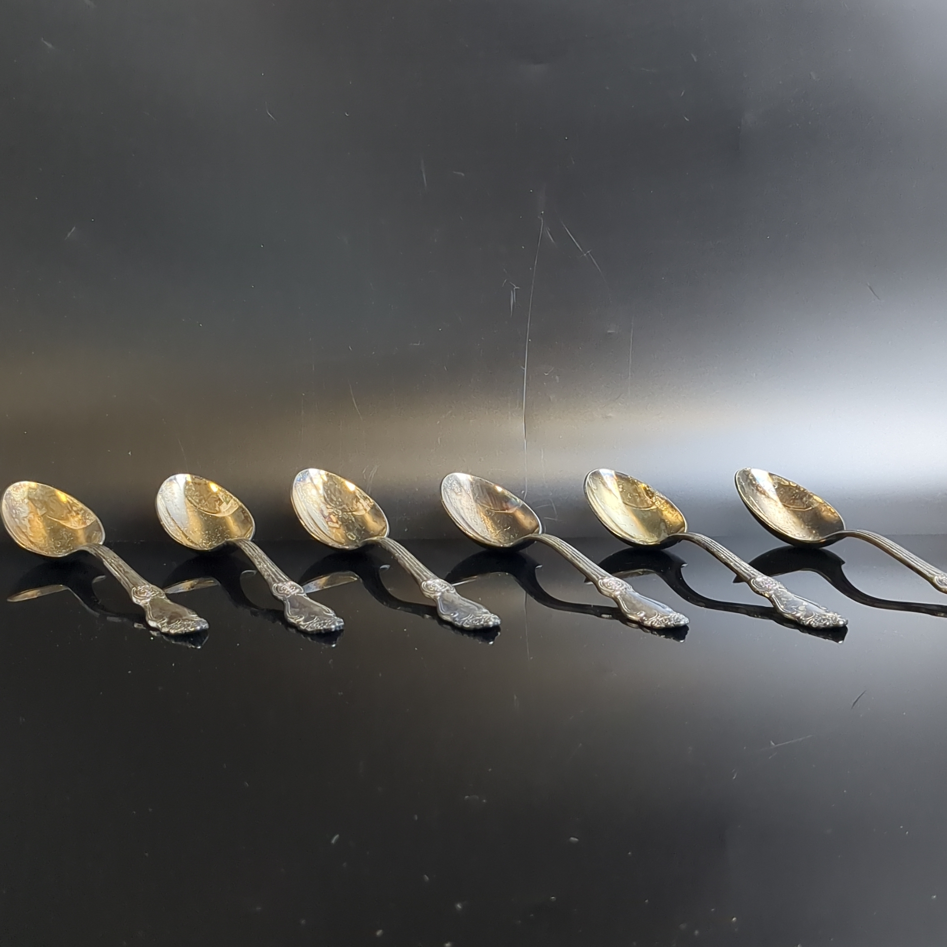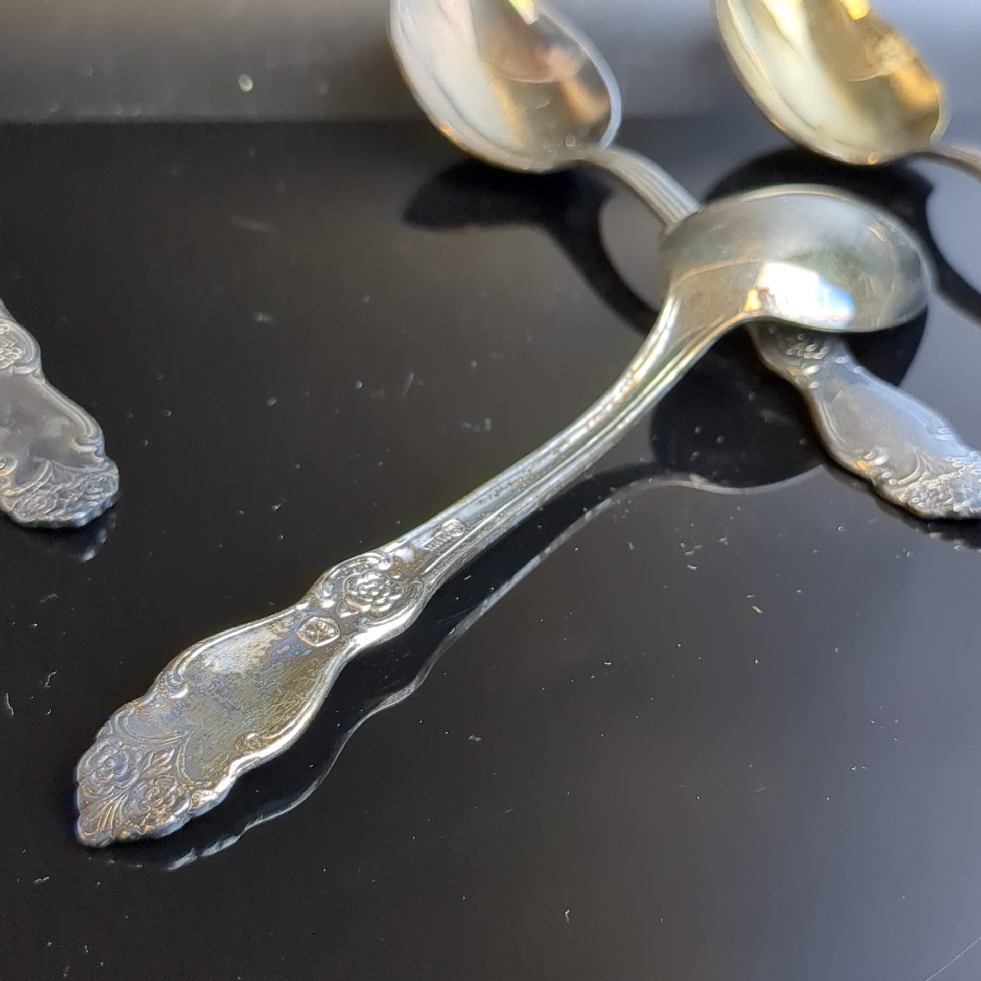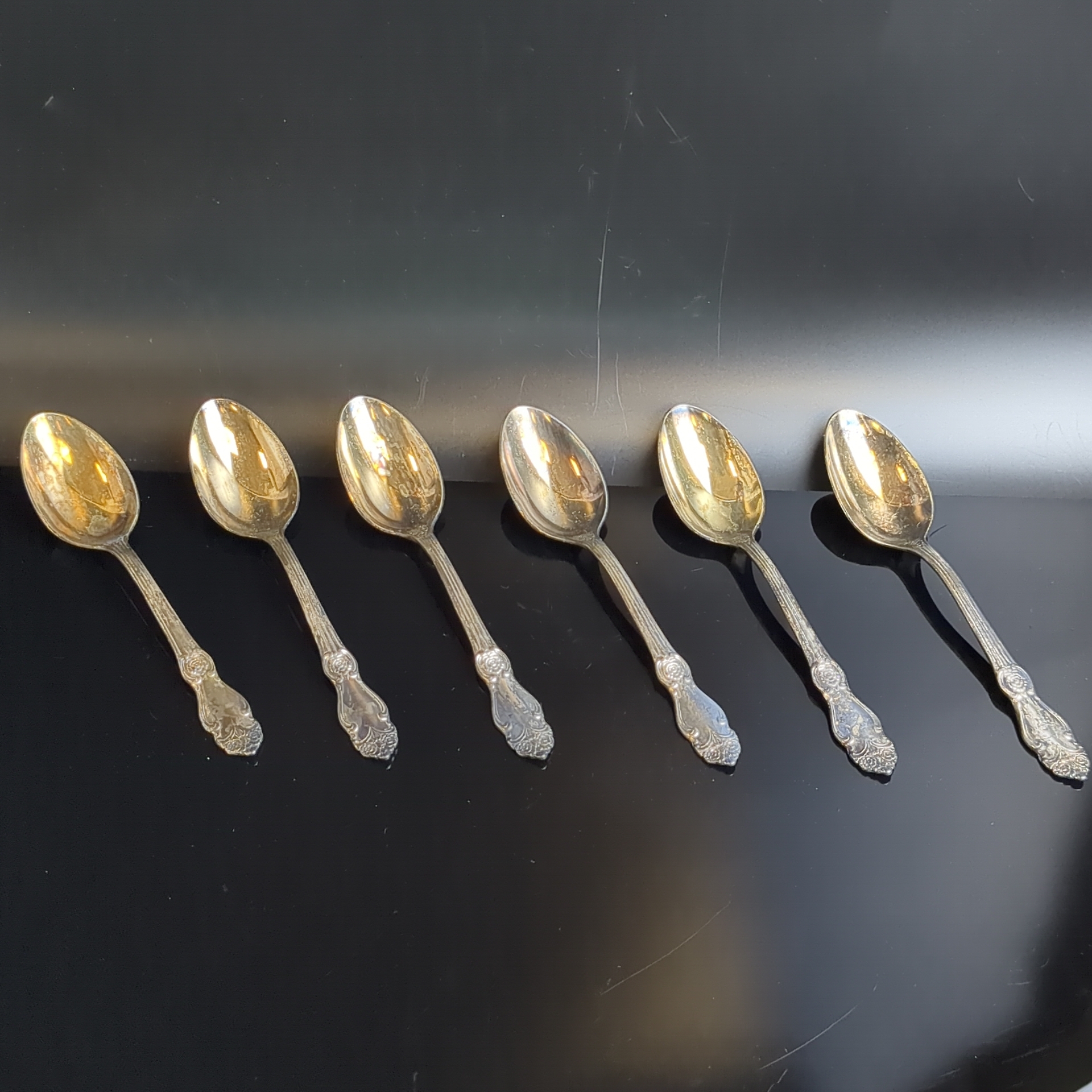 Набор чайных ложек "Серебряная роза" на 6 персон, мНЦ (медь-никель-цинк), серебрение, Кольчугинский завод цветных металлов, СССР, 1962-1990 гг.