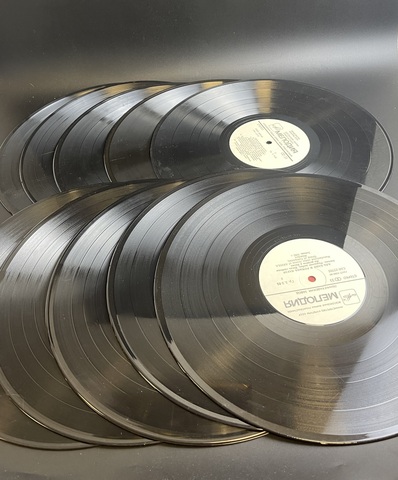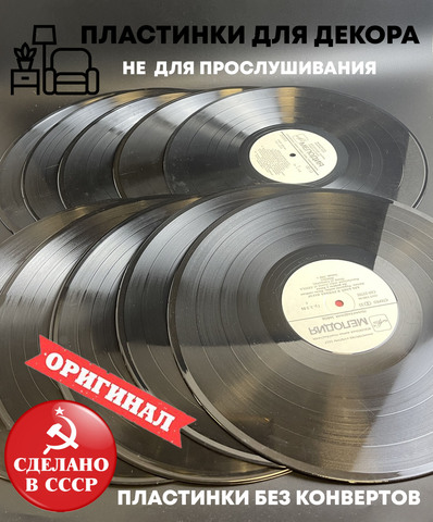 Пластинки без конвертов в наборе предназначены для декора, на самих пластинках присутствуют царапины и следы использования.