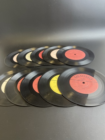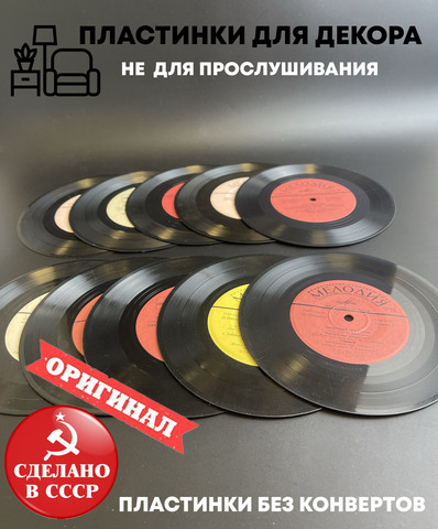 Пластинки без конвертов в наборе предназначены для декора, на самих пластинках присутствуют царапины и следы использования.