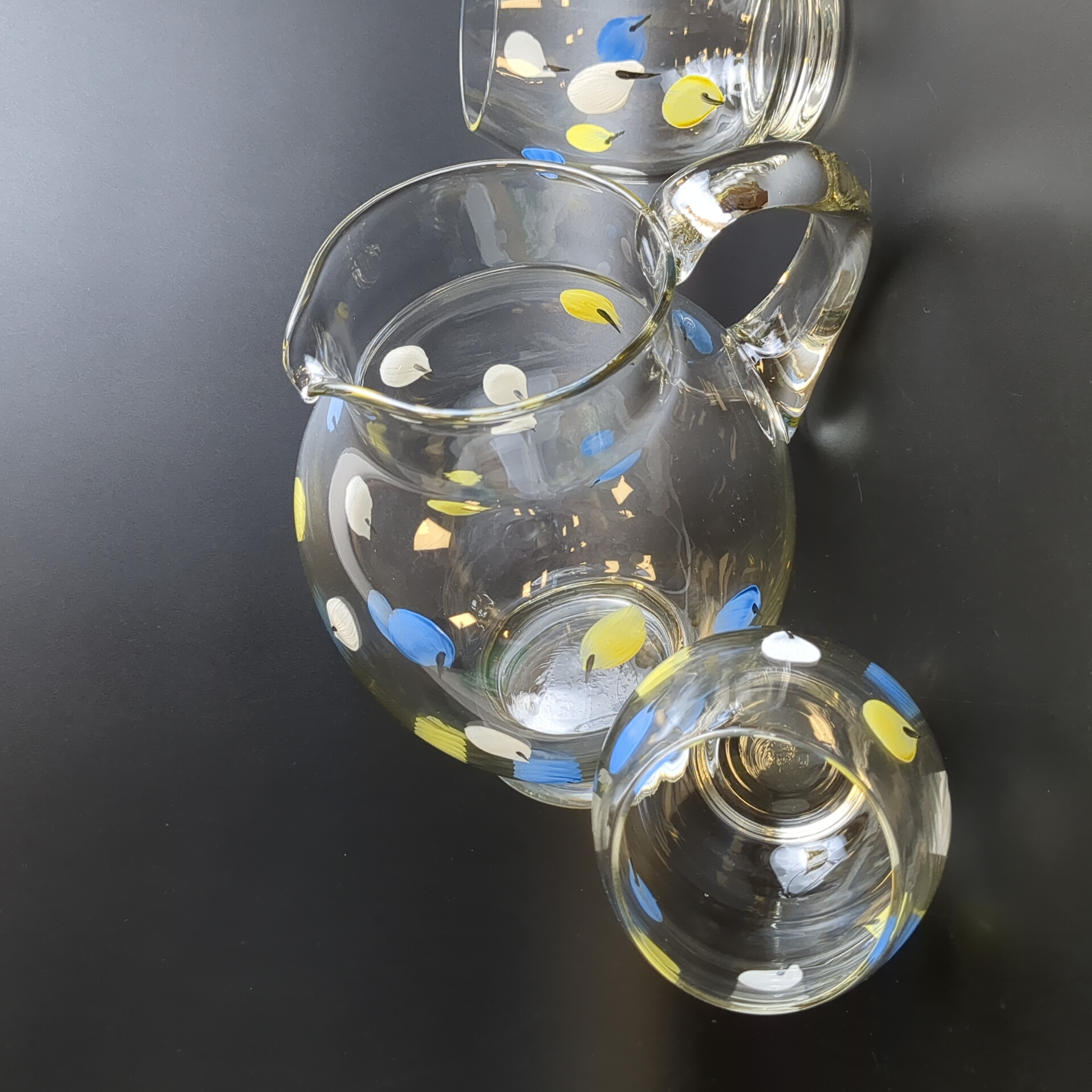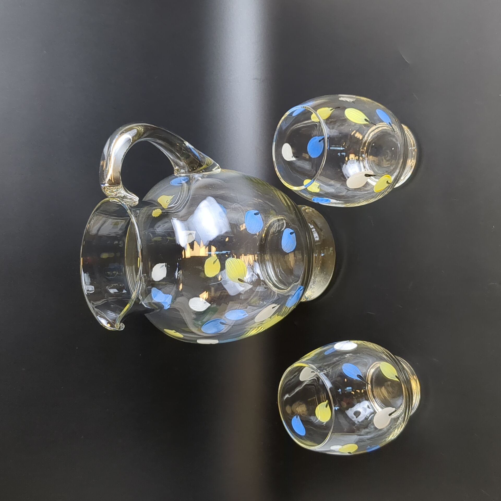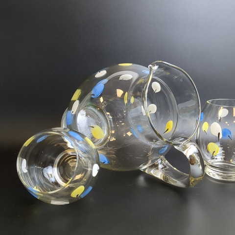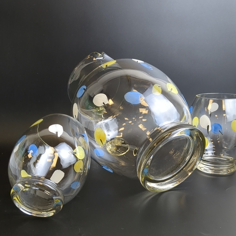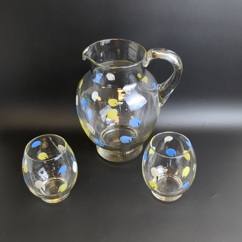 Откройте для себя очарование ушедшей эпохи с изящным набором для напитков - кувшин и 2 стакана — сокровищем винтажного стиля! Высота кувшина 21.5 см, высота стаканов - 10.5 см. Состояние и комплектация на фото.