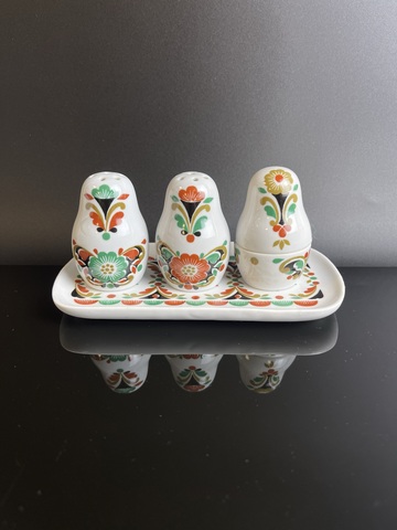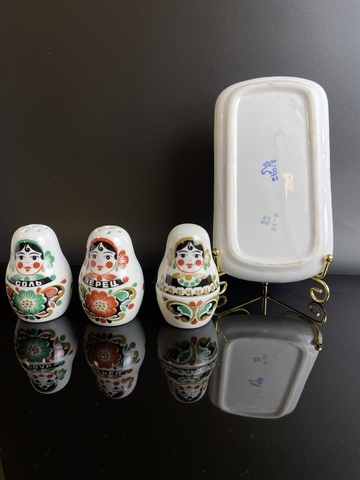 Набор для специй "Матрешки" (соль, перец, горчица), фарфор, декольте, клемо Вербилки, Дмитровский фарфоровый завод, СССР 1965-1990 гг.
