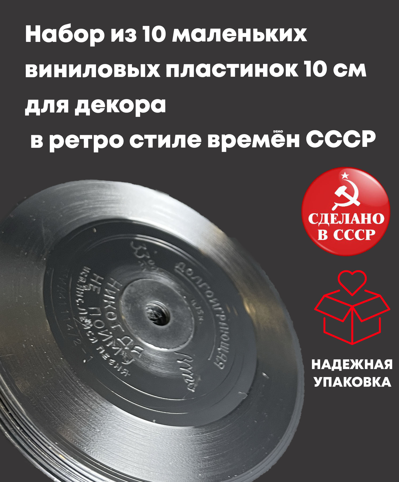 Набор для декора в ретро стиле из чёрных виниловых маленьких пластинок 10 штук диаметром 10 см времён СССР. Пластинки без конвертов.
