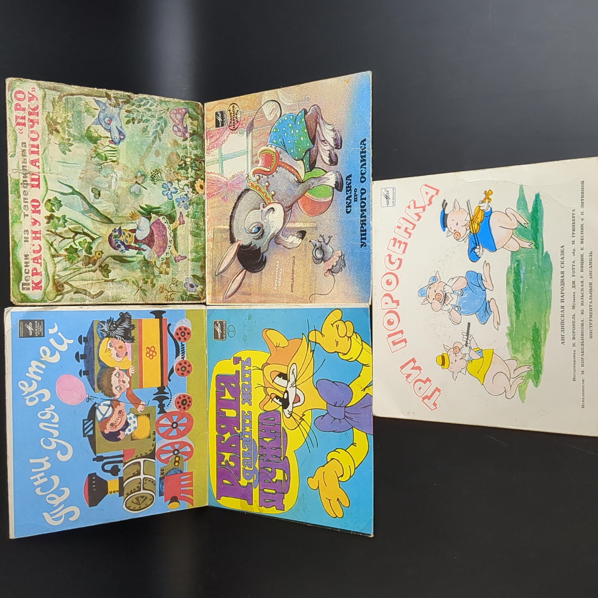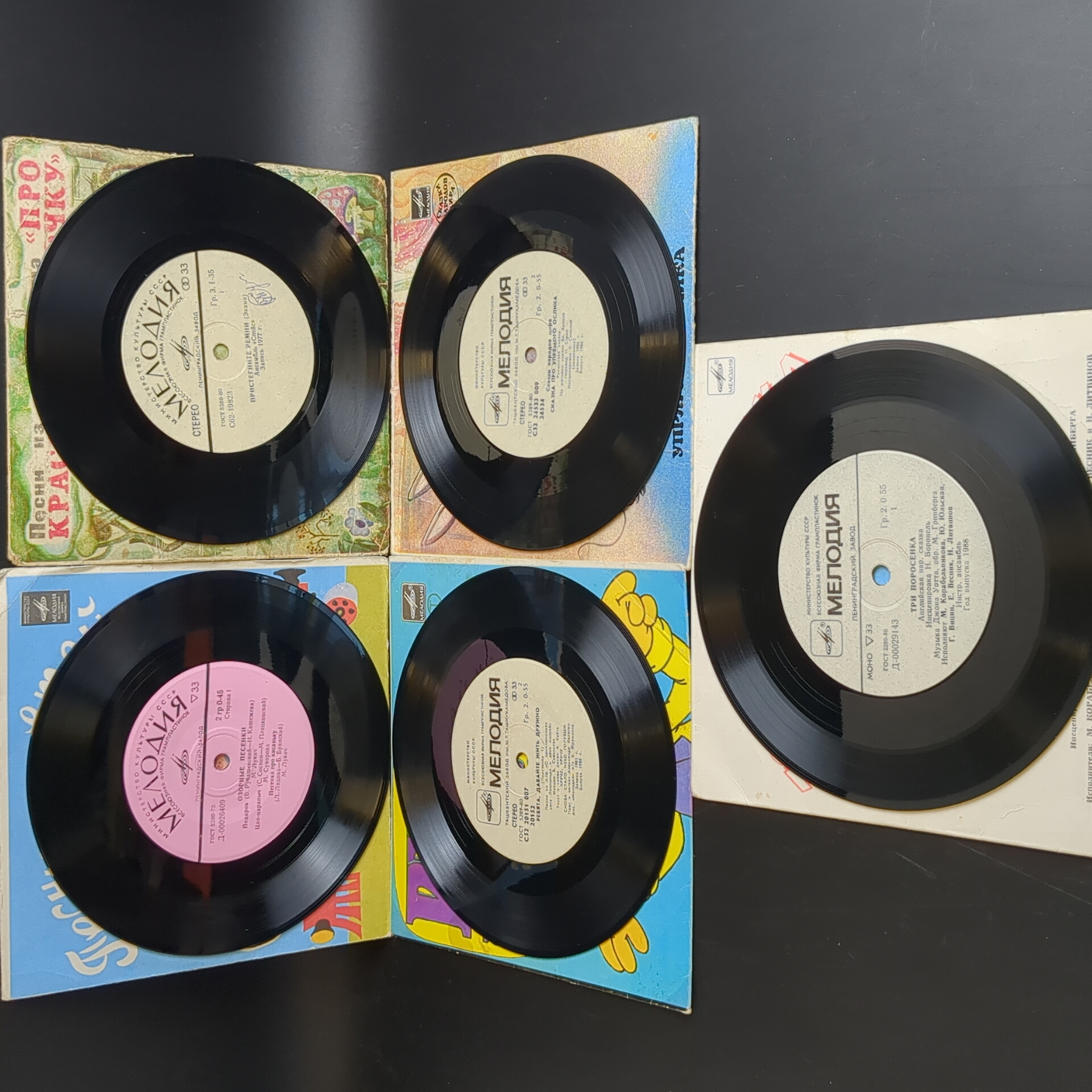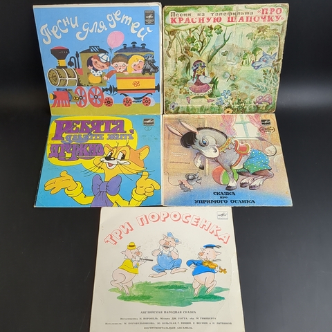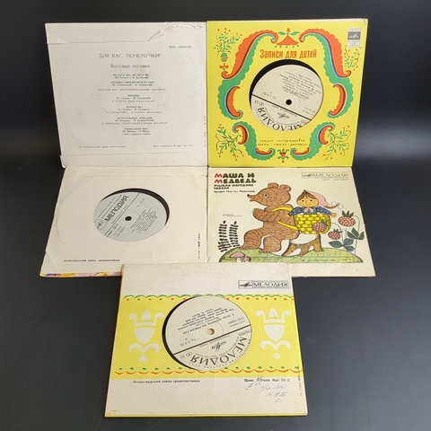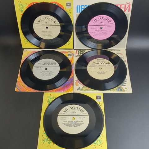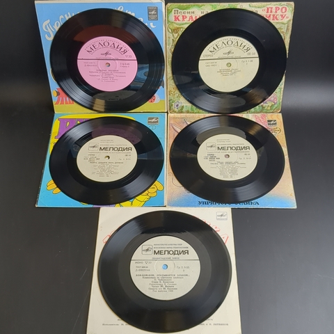 Набор из 10 виниловых пластинок 7 дюймов миньоны детские сказки и песни : Три поросенка / Котенок по имени Гав и др. 10 Виниловых пластинок 7 дюймов. Мелодия СССР.