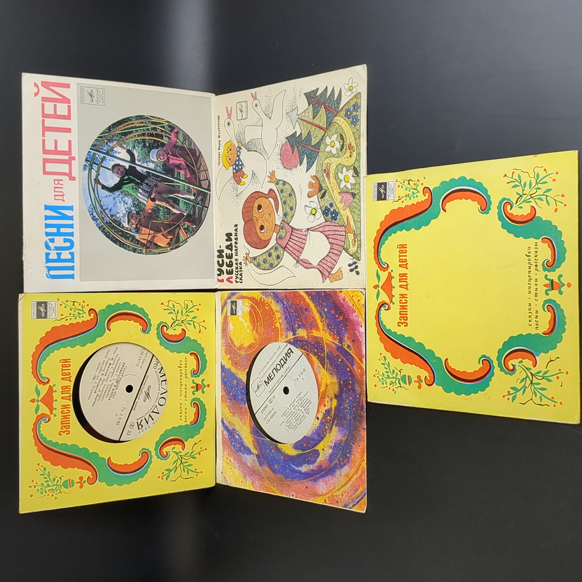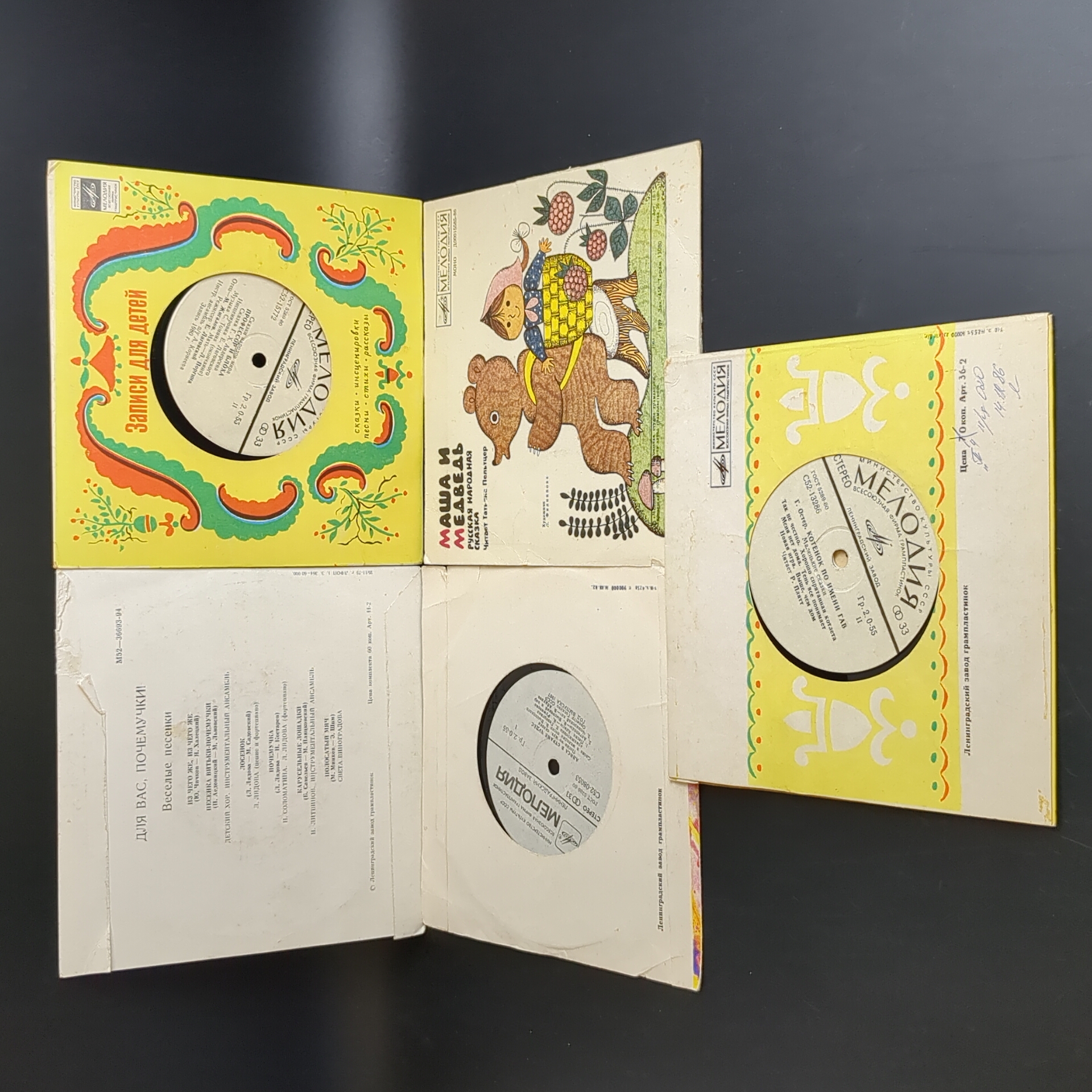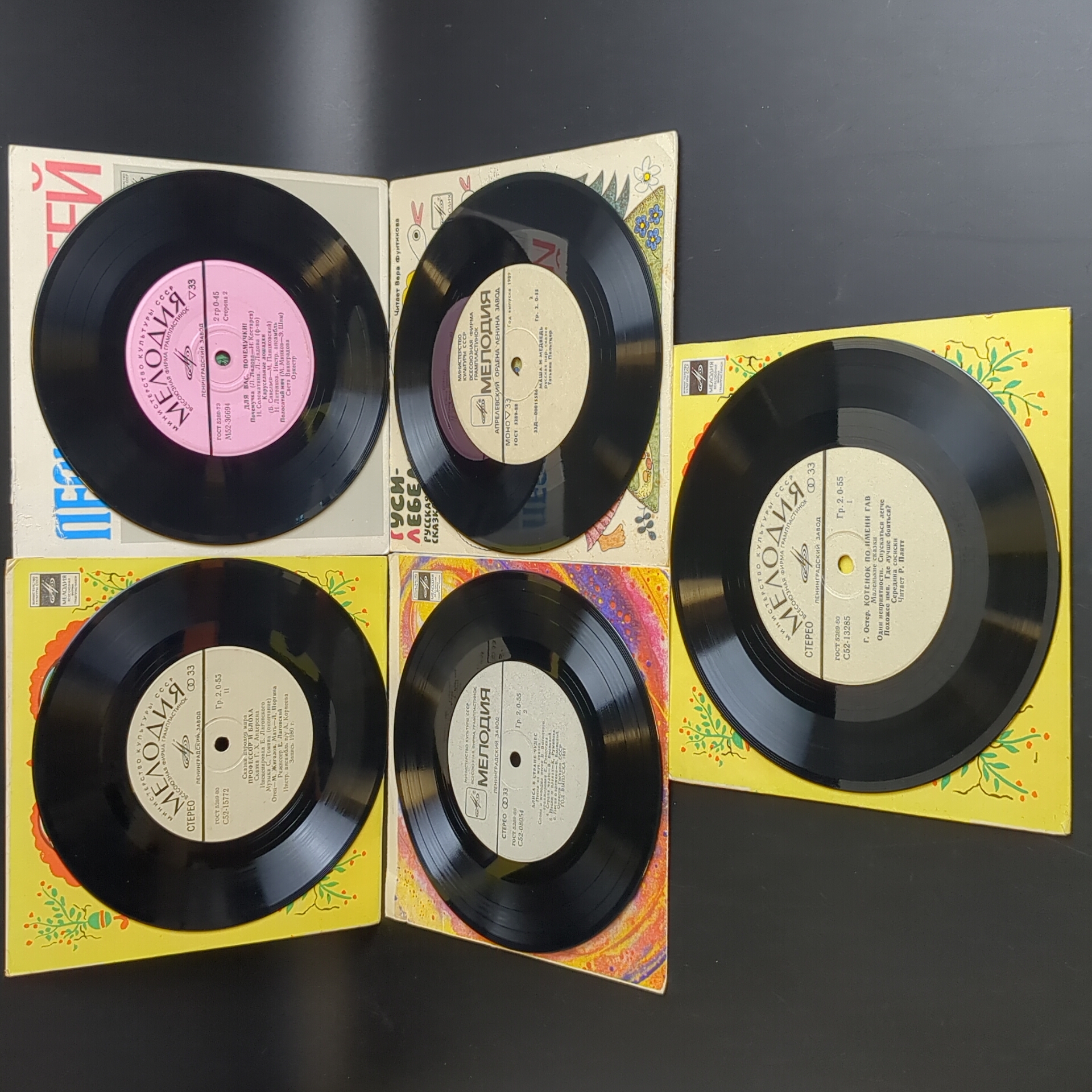 Набор из 10 виниловых пластинок 7 дюймов миньоны детские сказки и песни : Три поросенка / Котенок по имени Гав и др. 10 Виниловых пластинок 7 дюймов. Мелодия СССР.
