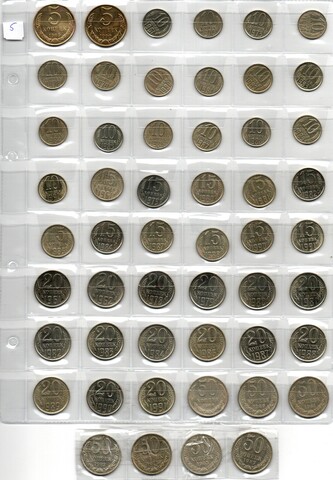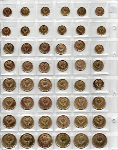 Набор из 100 монет СССР, номиналом от 1 копейки до 50 копеек (без повторов). VF-XF (5)
