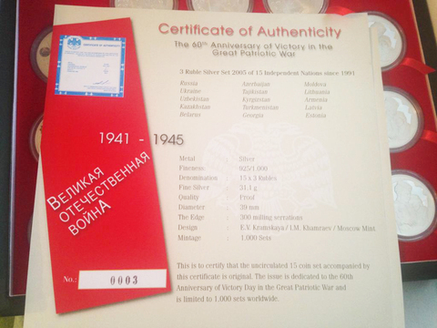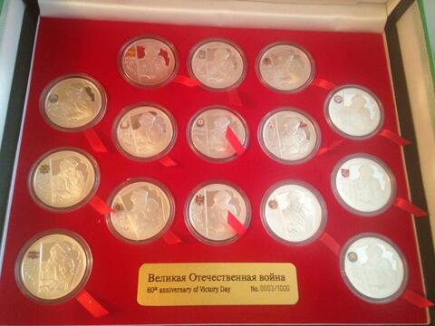Набор из 15 монет 3 рубля. 60 лет победы в Великой Отечественной войне. 2005 год