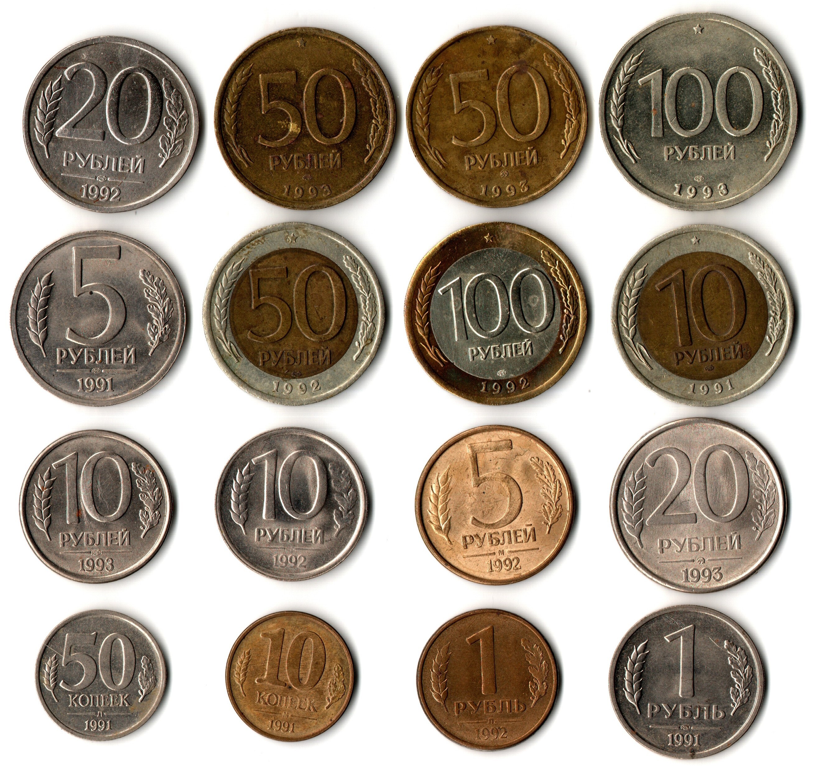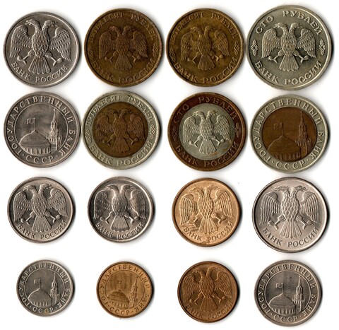 Набор из 16 монет 1991 - 1993 годов ГКЧП + Россия молодая