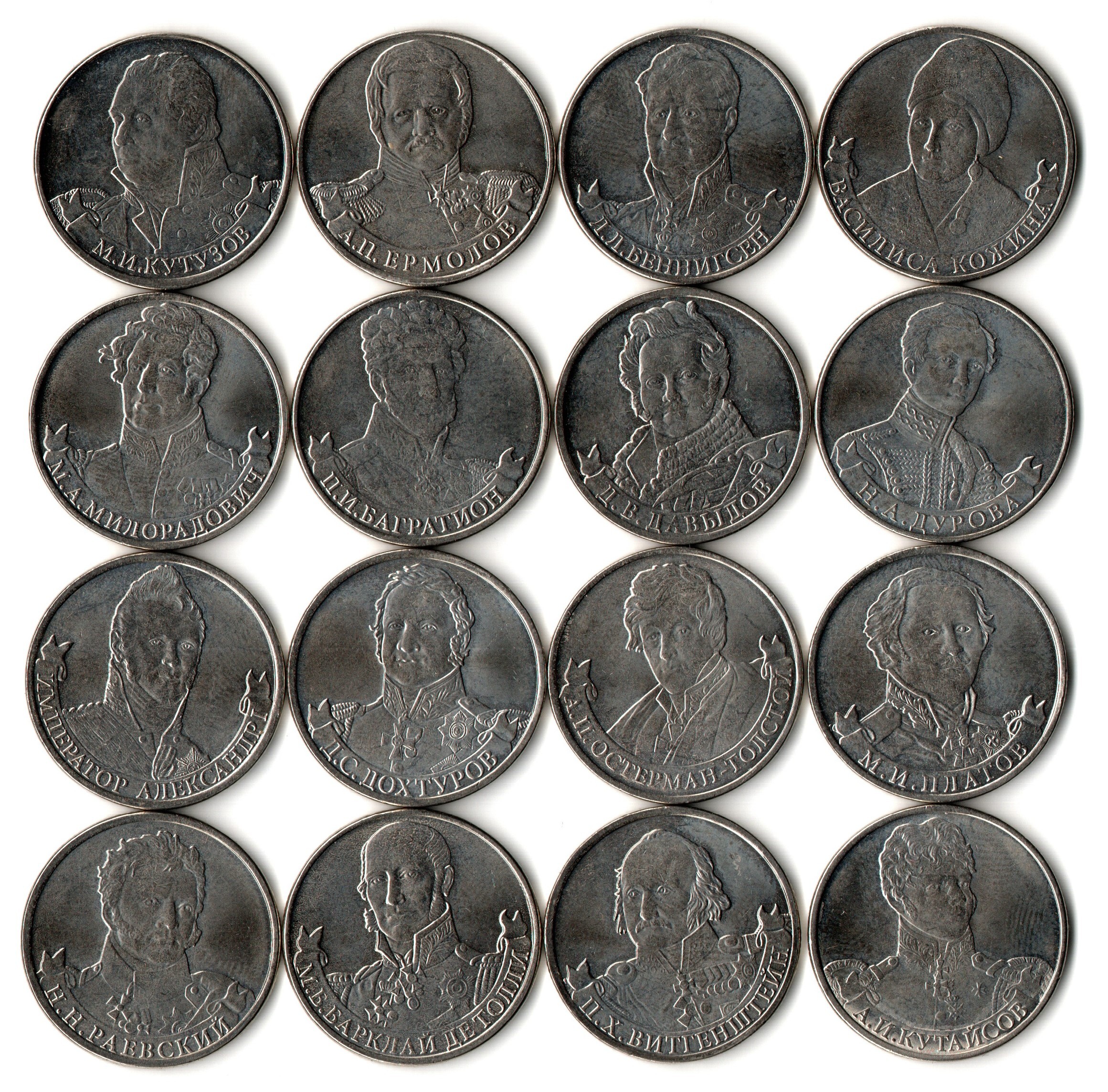 Набор из 16 монет номиналом 2 рубля, посвященных 200-летию победы России в Отечественной войне 1812 года "Полководцы и герои Отечественной войны 1812". 2012 год