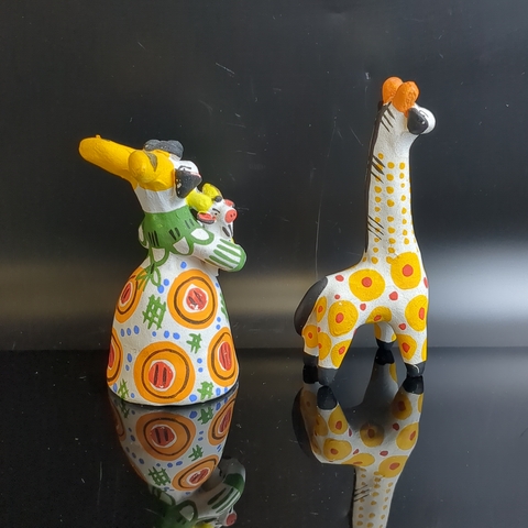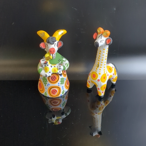 Набор из 2 дымковских игрушек Жираф и Коза с козленком. Киров- Вятка, статуэтки СССР, 1970-1980 гг