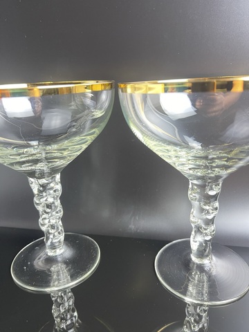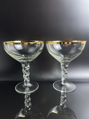 Набор из 2 изящных бокалов на красивой ножке под шампанское и коктейли винтаж, стекло, золочение. Высота- 14.5 см, диаметр -11.5 см.