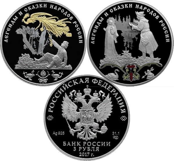 Набор из 2 монет. 3 р. 2017 год. Серия "Легенды и сказки народов России" - "Жар птица" и "Царевна-Лягушка".