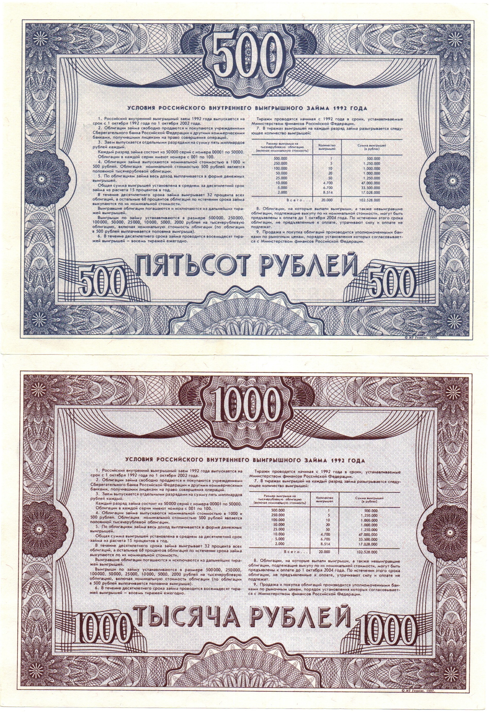 | Номинал: | 500,1000 рублей |