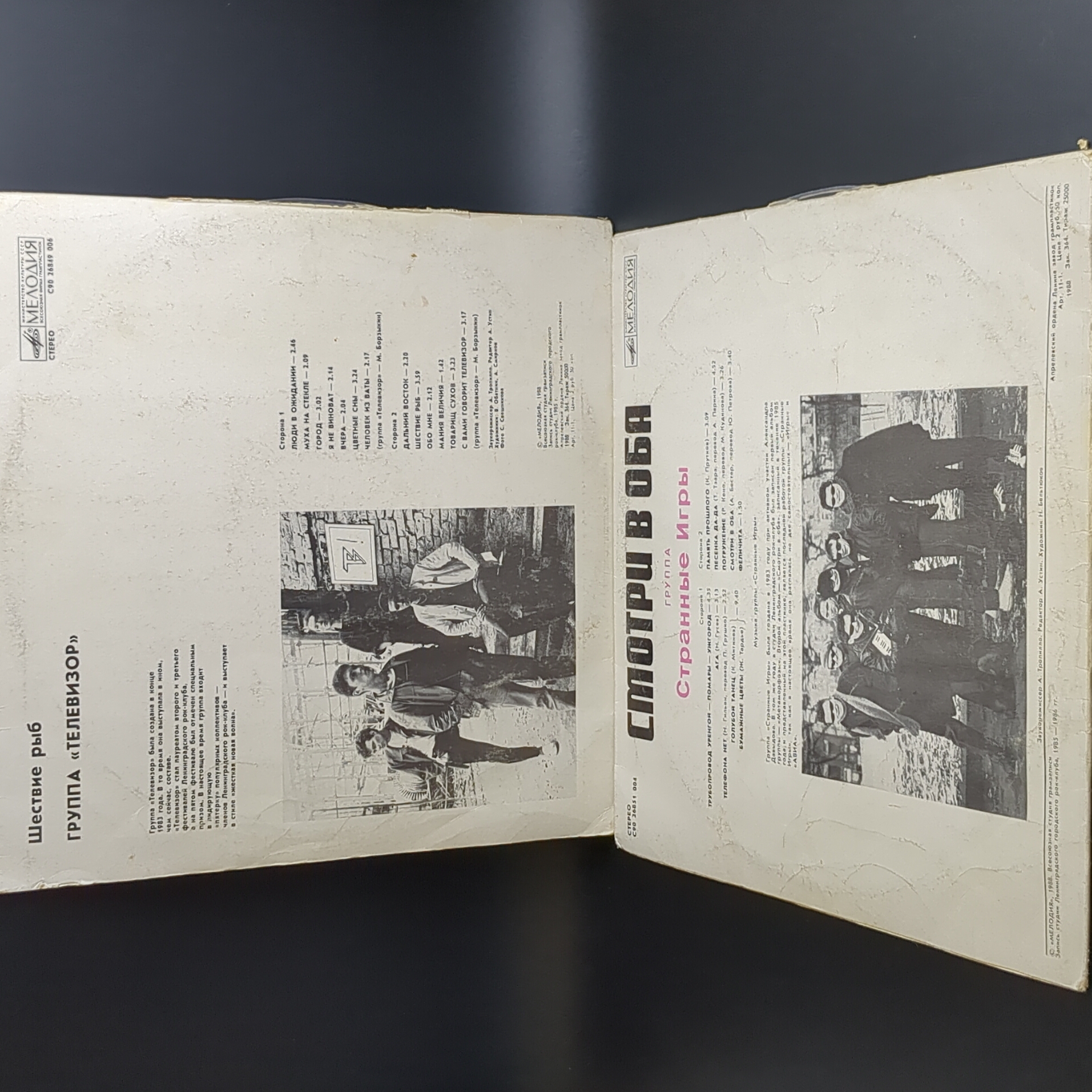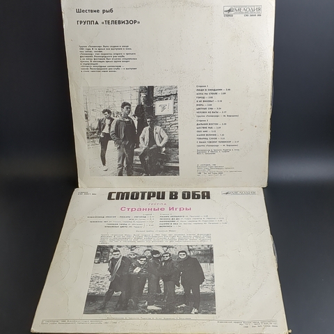 Набор из 2 пластинок Странные игры и группа Телевизор. 2 Виниловые пластинки 12 дюймов. Мелодия СССР. Русский рок. LP Рок группа Телевизор - Шествие рыб / LP Рок - группа Странные Игры - Смотри в Оба. Конверт VG / Диски VG