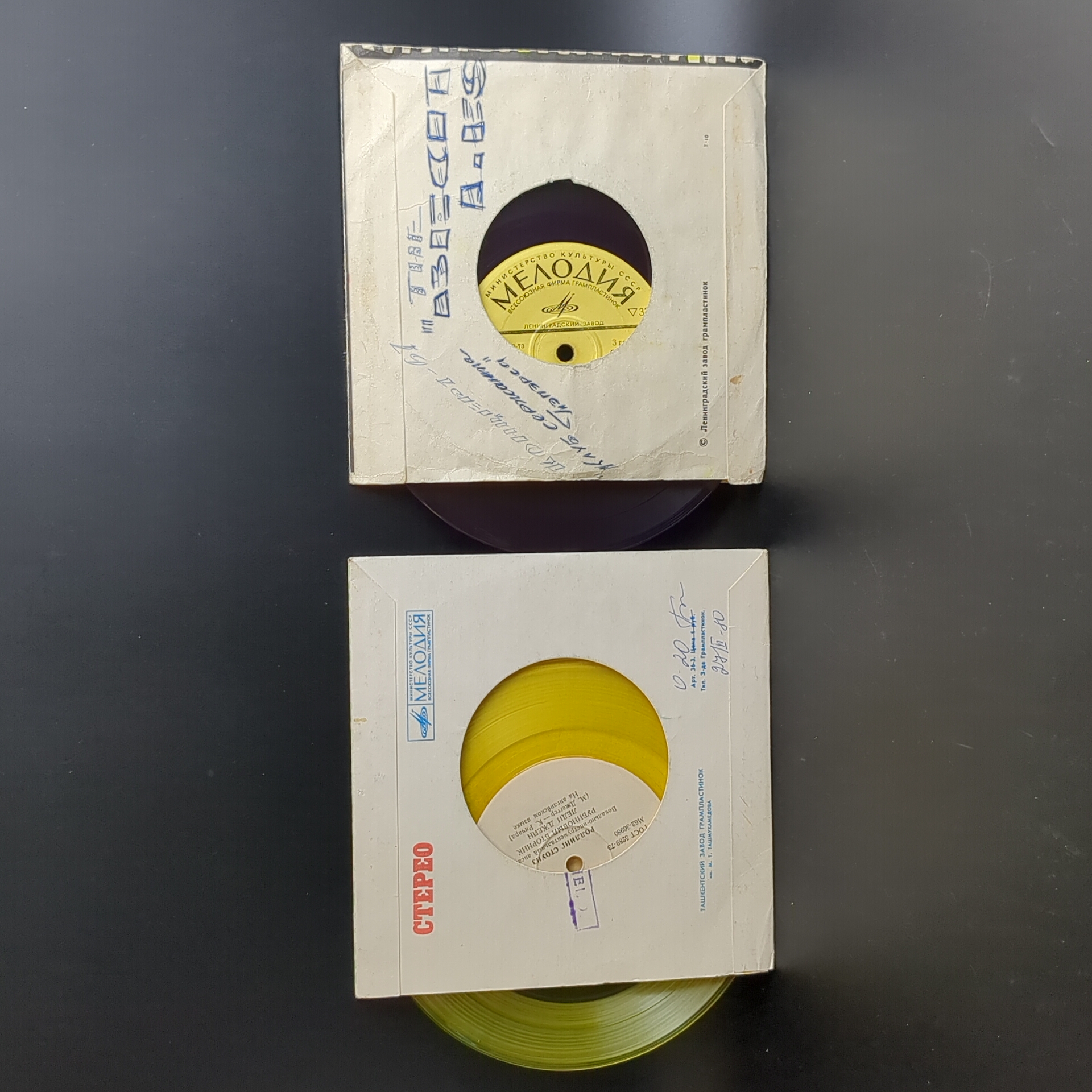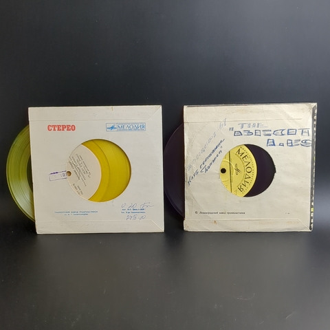 Набор из 2 цветных пластинок / цветные редкие коллекционные пластинки : Rolling Stones - Роллинг Стоунз - Зарубежный рок - жёлтый винил/ Paul McCartney - Пол Маккартни / J. Lennon - Дж. Леннон - фиолетовый винил. 2 Виниловые пластинки 7 дюймов. Мелодия СССР. Конверты VG / Диски EX