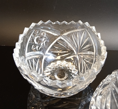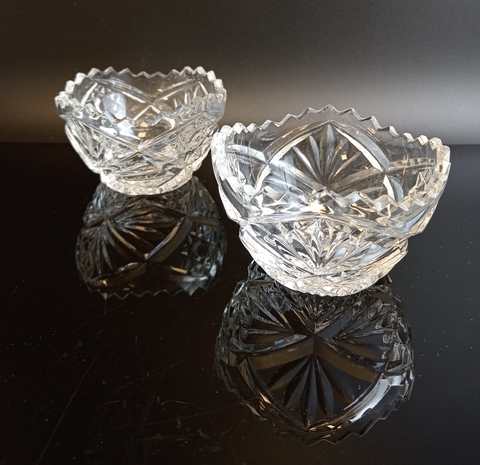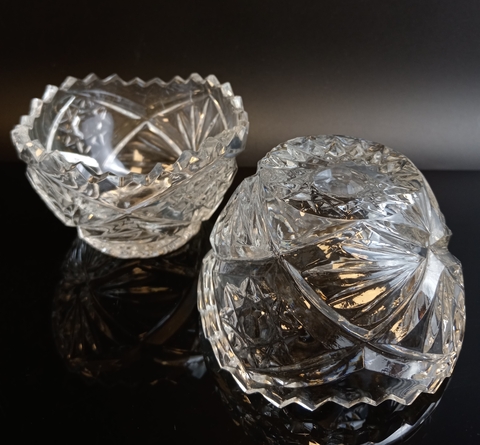 Набор из 2 винтажных хрустальных конфетниц, алмазная грань, рельеф СССР 1970-1990 гг. Высота - 6.5 см. Присутствуют следы использования - состояние на фото