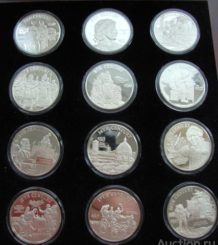 Набор из 20 монет 50 долларов 1997 г. Тысячелетие Миллениум. Личности. События XX века. О-ва Кука. Серебро