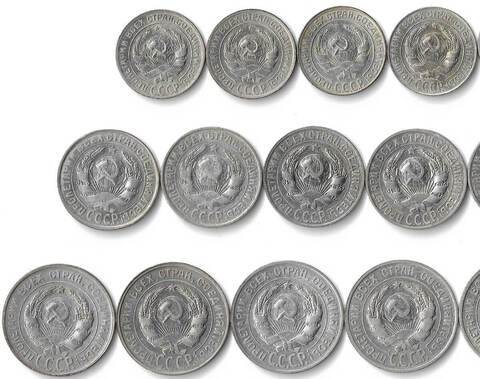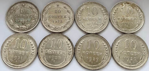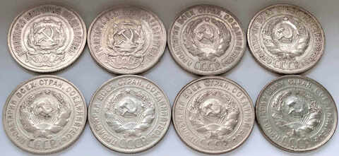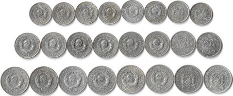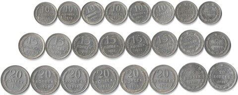 Набор из 24 монет 10,15,20 копеек 1922-1930 гг СССР и РСФСР, серебро билон проба 500 (XF)