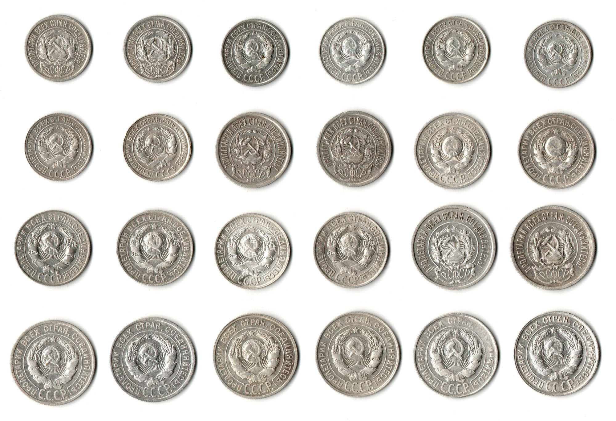 Набор из 24 монет 10,15,20 копеек 1922-1930 гг СССР И РСФСР серебро (VF+XF) (3)