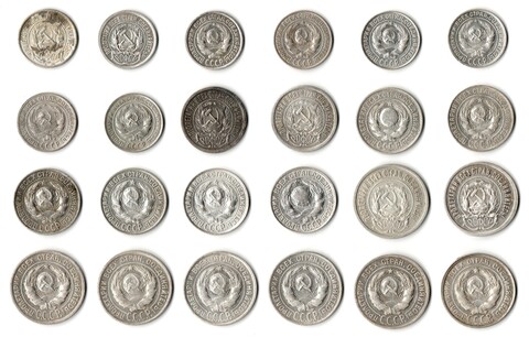Набор из 24 монет 10,15,20 копеек 1922-1930 гг СССР И РСФСР серебро (VF+XF) (4)