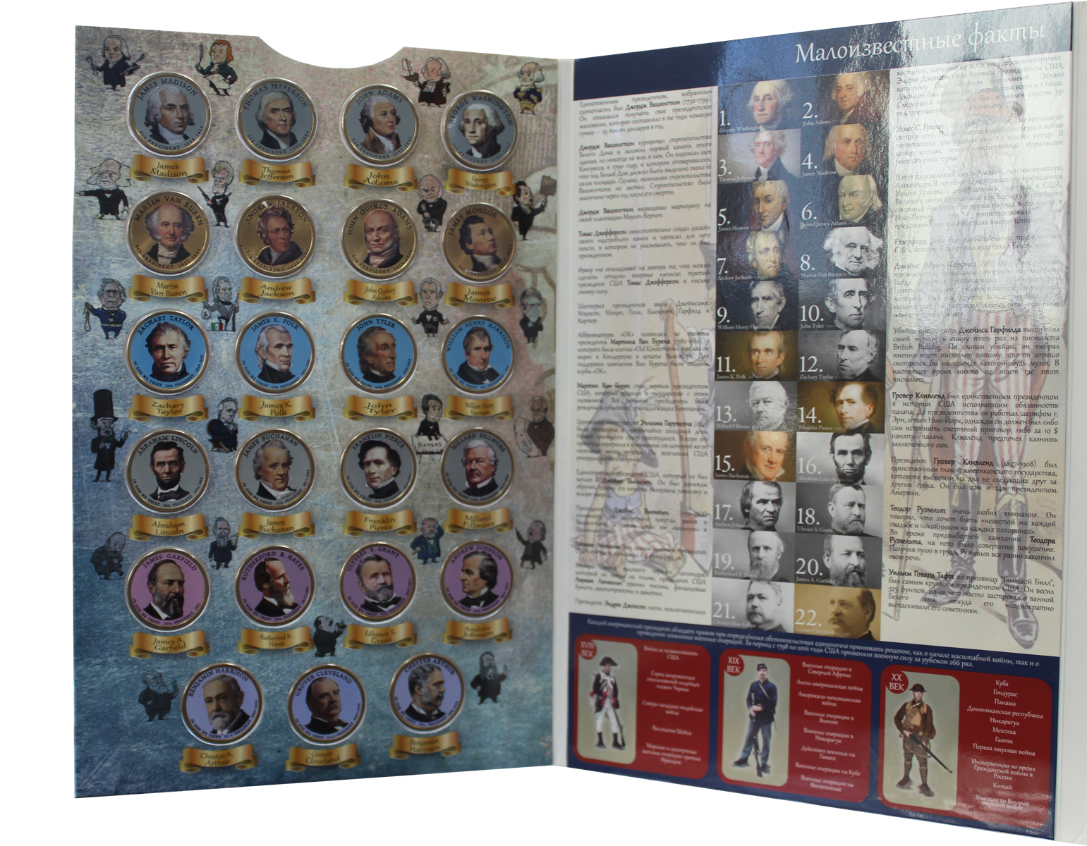 Набор из 26 цветных монет 1 доллар серии Президенты США