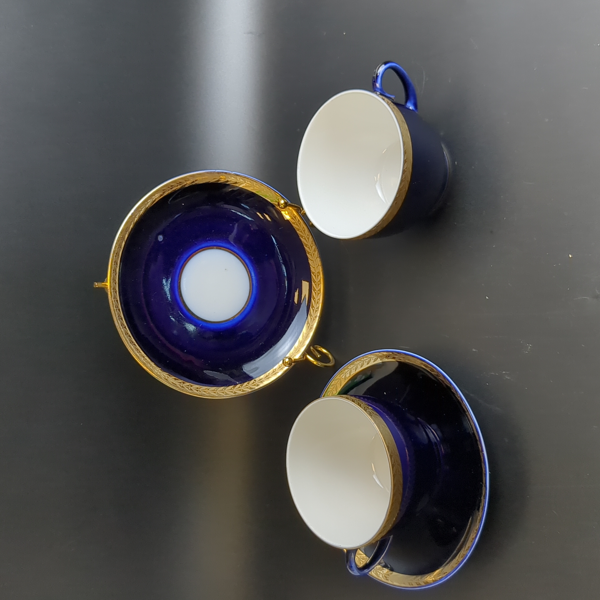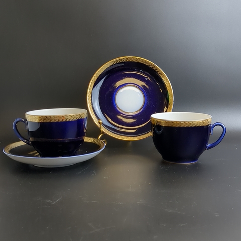 Набор из 2х чайных пар ,фарфор ЛФЗ, кобальт с позолотой, винтаж СССР 1970-1990 гг. 4 предмета в наборе. Высота чашечки - 6.3 см, диаметр блюдца - 14.5 см. Состояние на фото