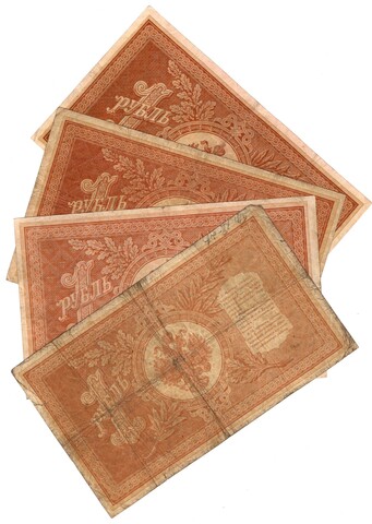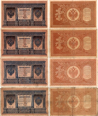 Набор из 4 кредитных билетов 1 рубль 1898 года. Управляющий И.П. Шипов. Набор кассиров.