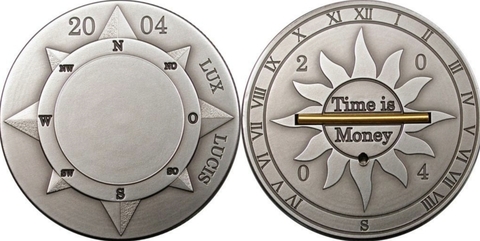 Набор из 2 монет 10 долларов 10 Франков Либерия. Компас. Время - деньги. 2004 г. Серебро
