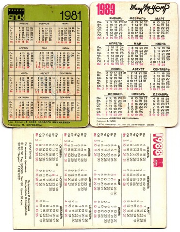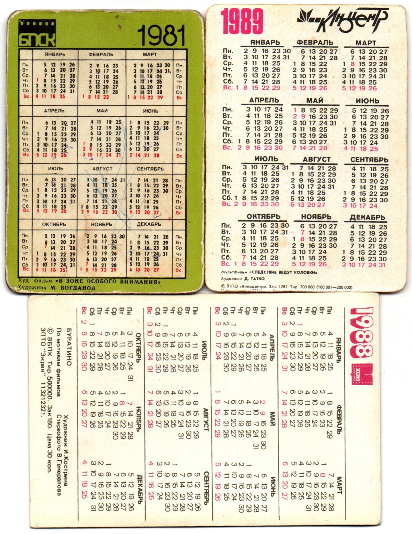 Набор из 3 стерео Календариков. Мультфильмы, фильм СССР 1981, 1988, 1989 год