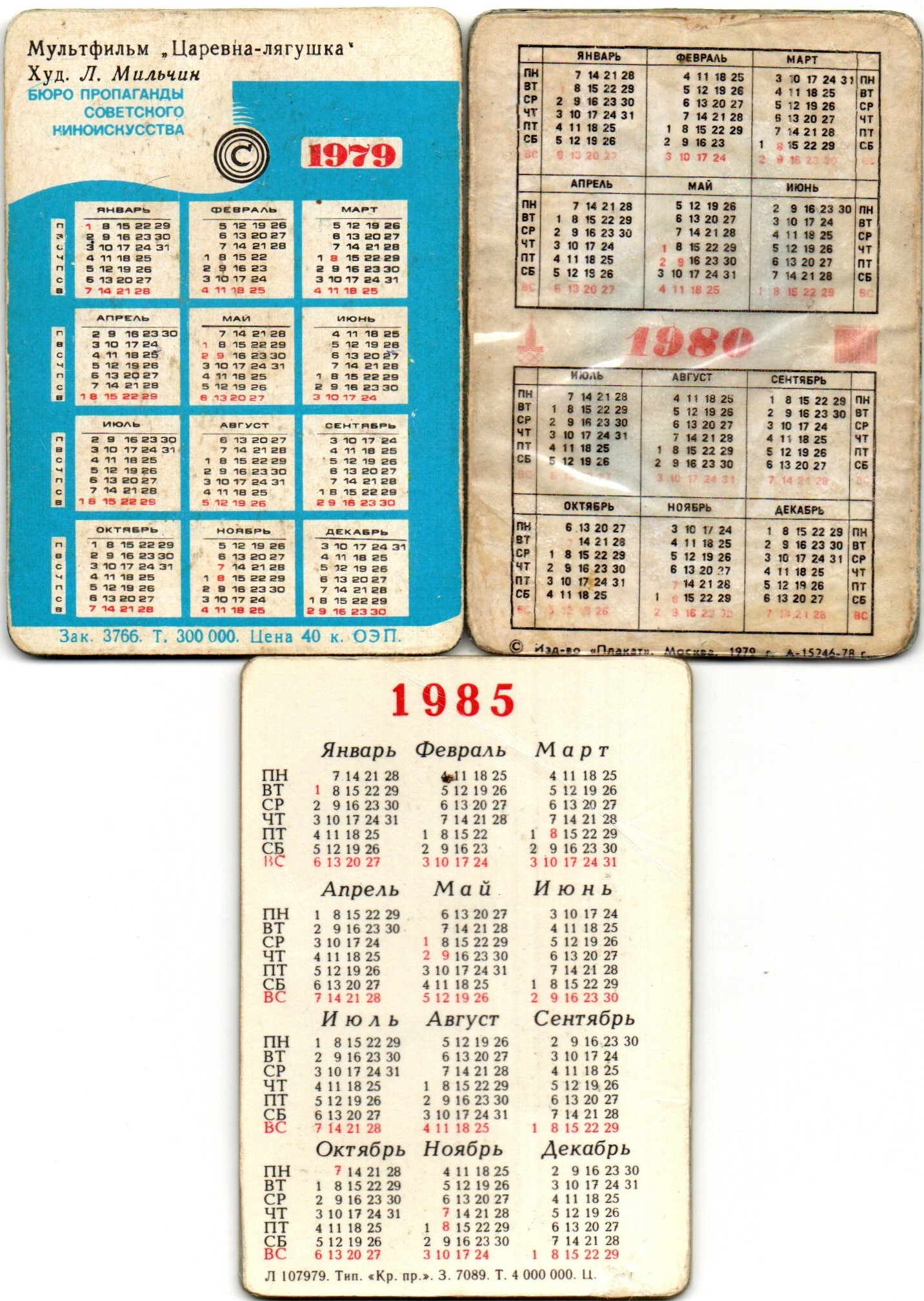 Набор из 3 стерео Календариков. Мультфильмы СССР 1979, 1980, 1985 год