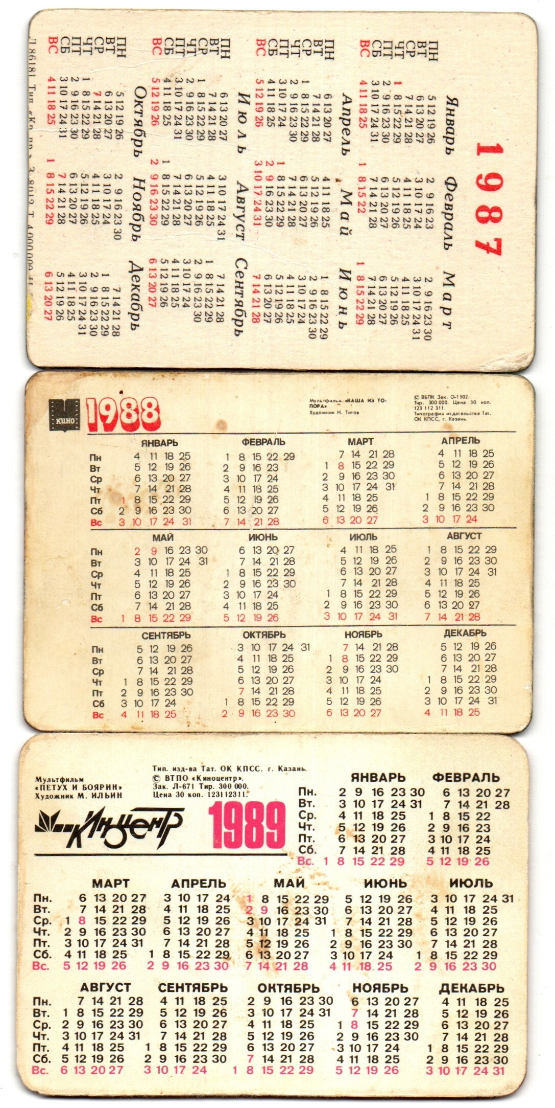 Набор из 3 стерео Календариков. Мультфильмы СССР 1987, 1988, 1989 год