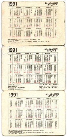 Набор из 3 стерео Календариков. Мультфильмы СССР 1991 год