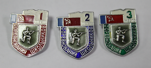 Набор из 3 значков "Соревнование школьников. Стрельба" (1, 2 и 3 место) XF