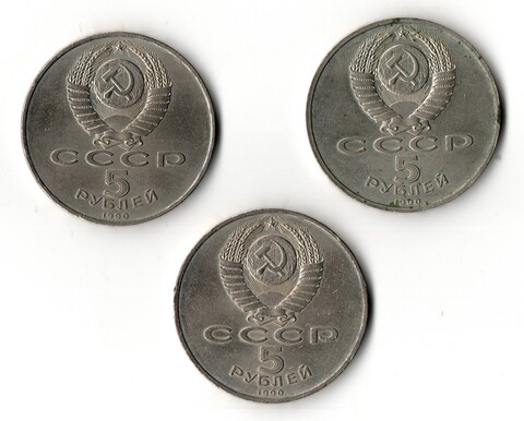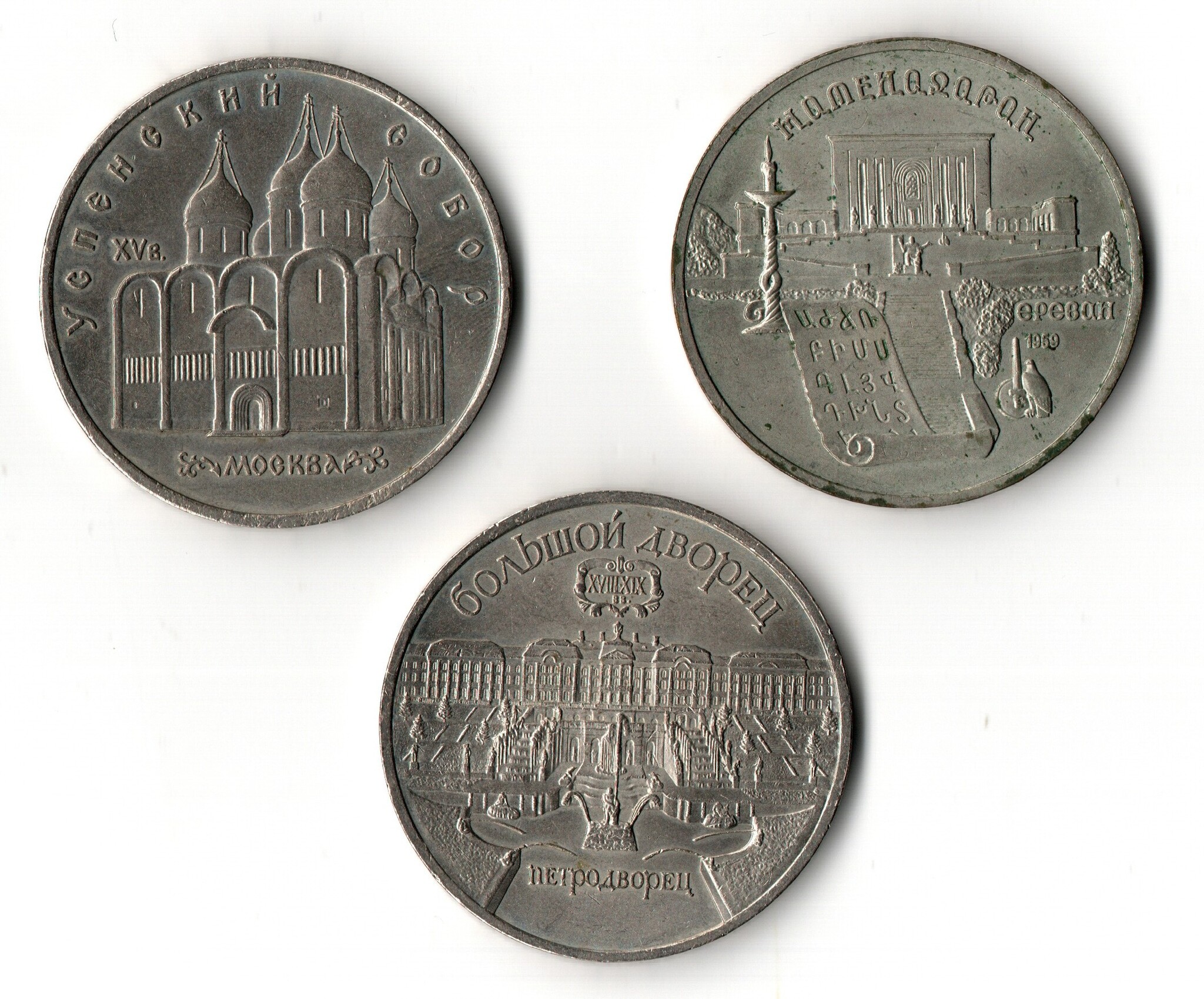 Набор из 3х юбилейный 5 рублей СССР - Петродворец, Успенский собор, Матенадаран