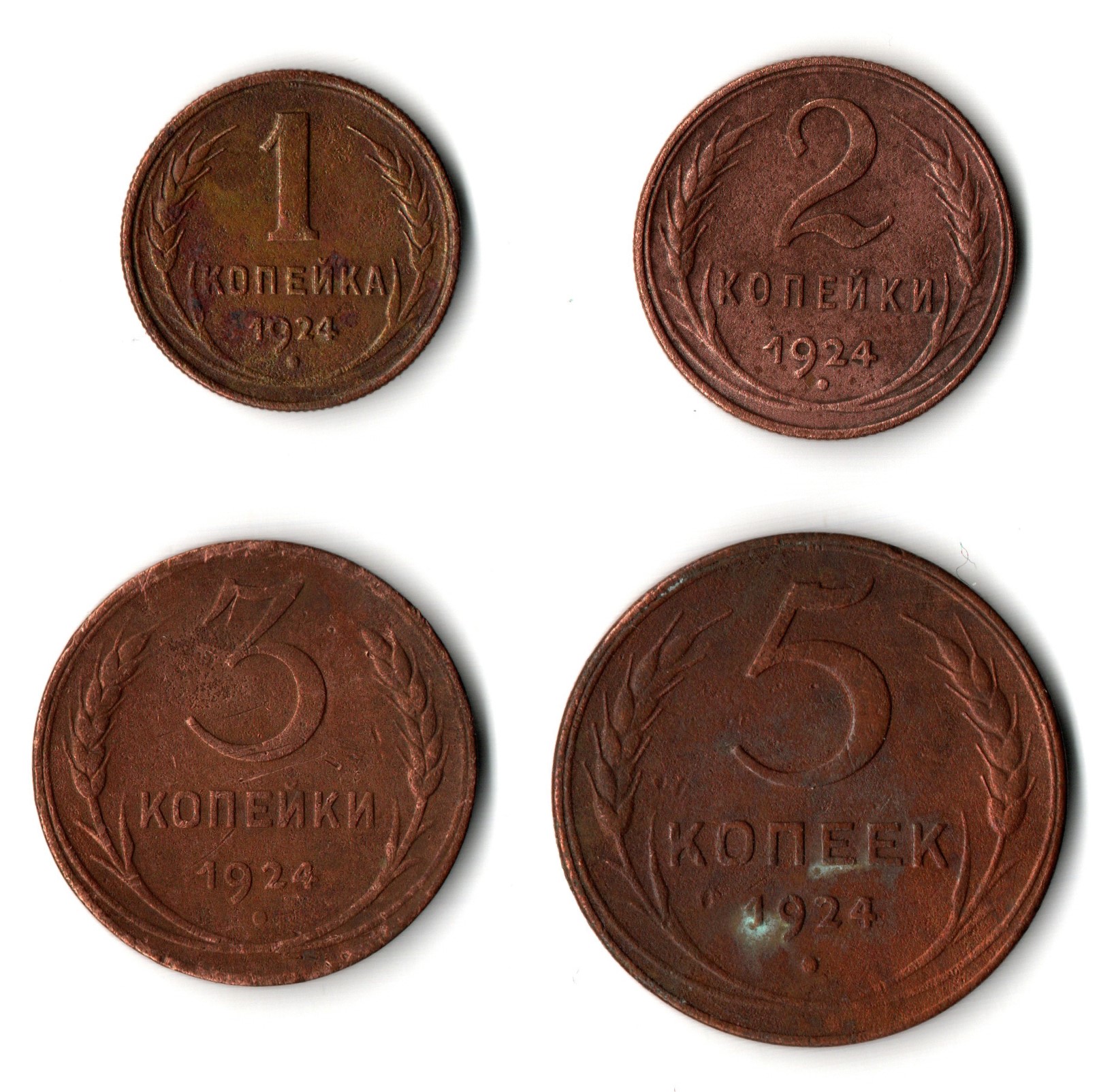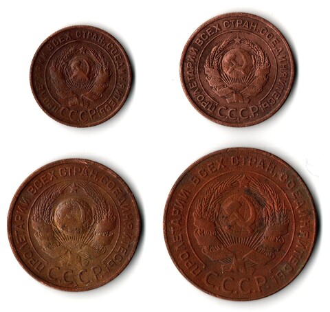 Набор из 4-х медныйх монет 1,2,3.5 копеек 1924 (VF) (2)