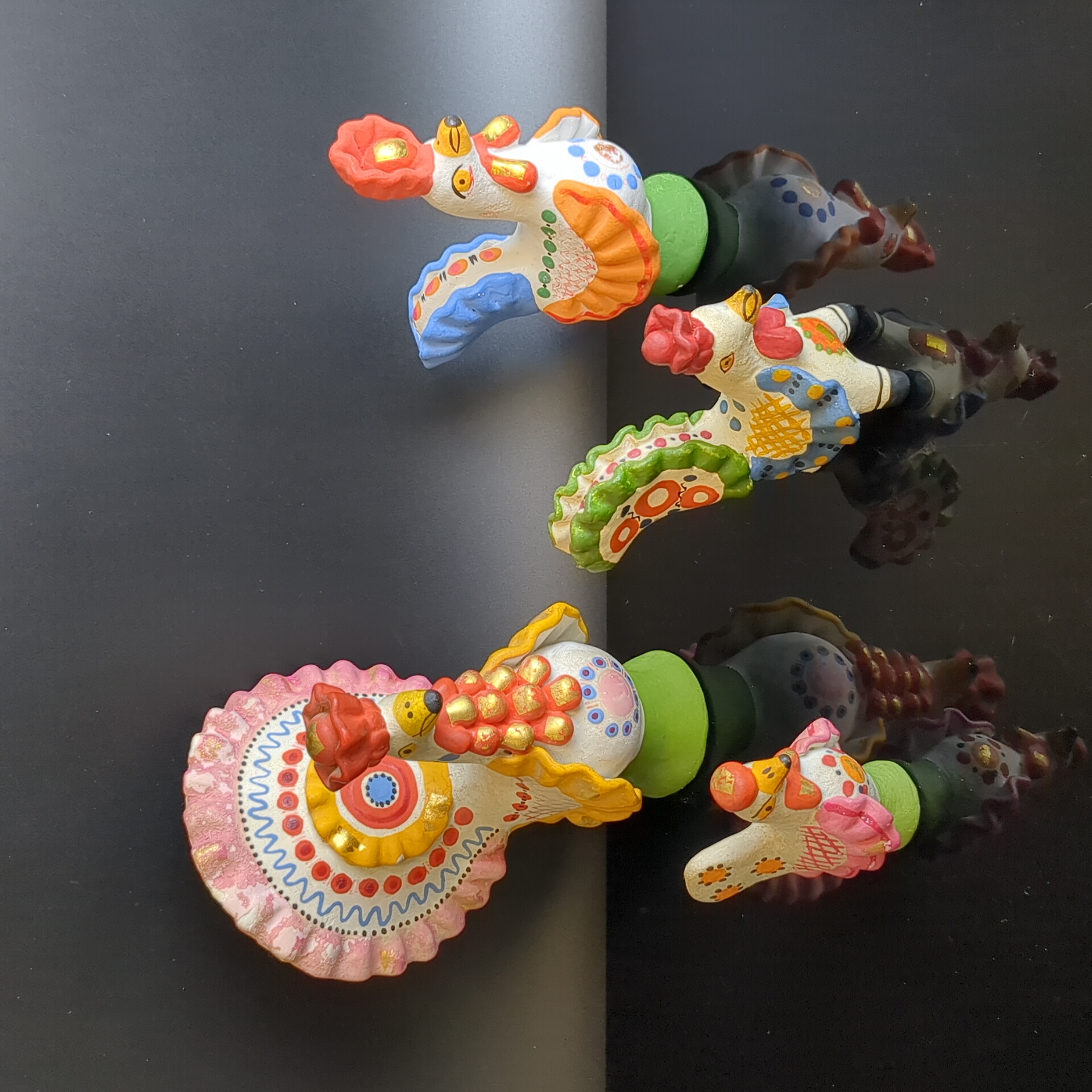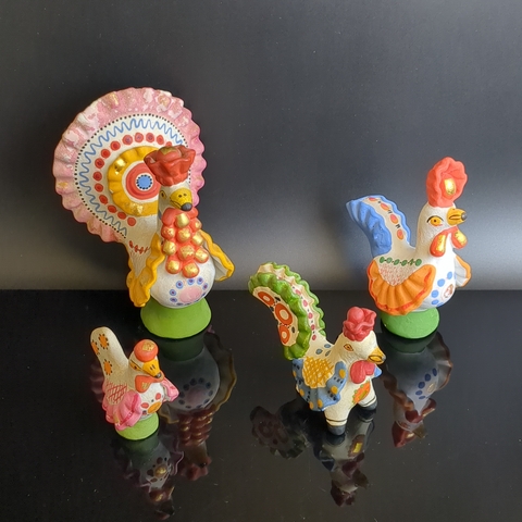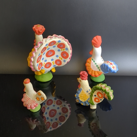 Набор из 4 индюков. Дымковсая игрушка Индюк 4 шт, шикарная ручная роспись,. Киров-Вятка, винтаж 1980-1990 гг